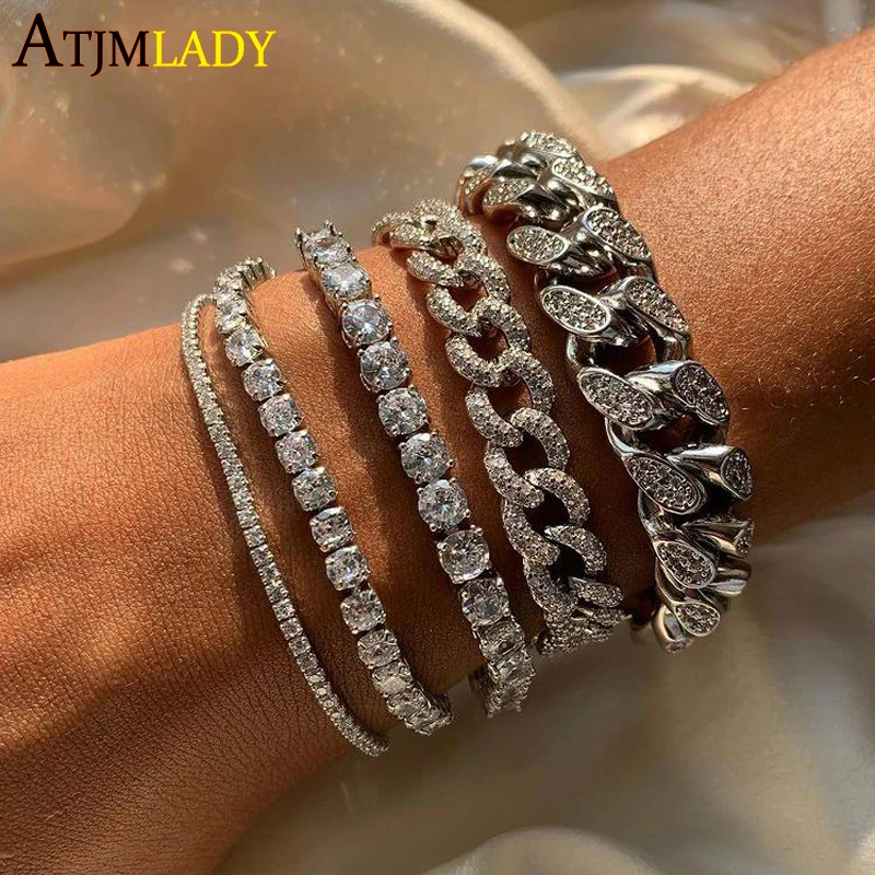2021 Топ Мода медный браслет с подвеской серебро Цвет 1 сырье CZ Aaa Bling льдом мужские звено цепи зубец 5 мм CZ Теннисный браслет