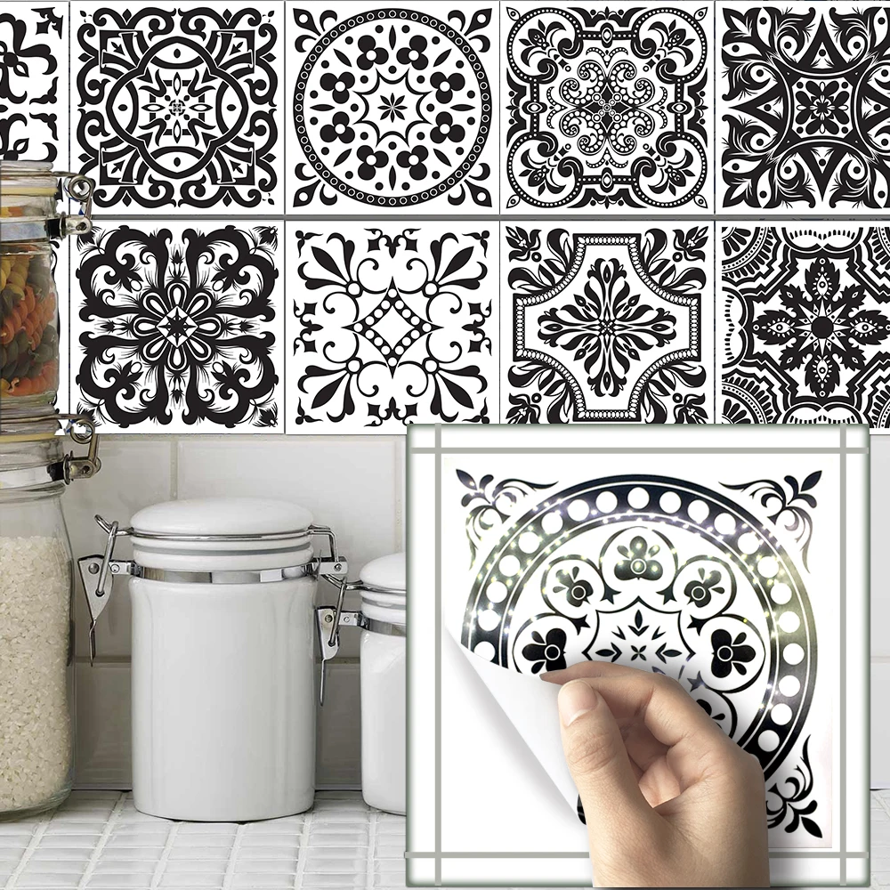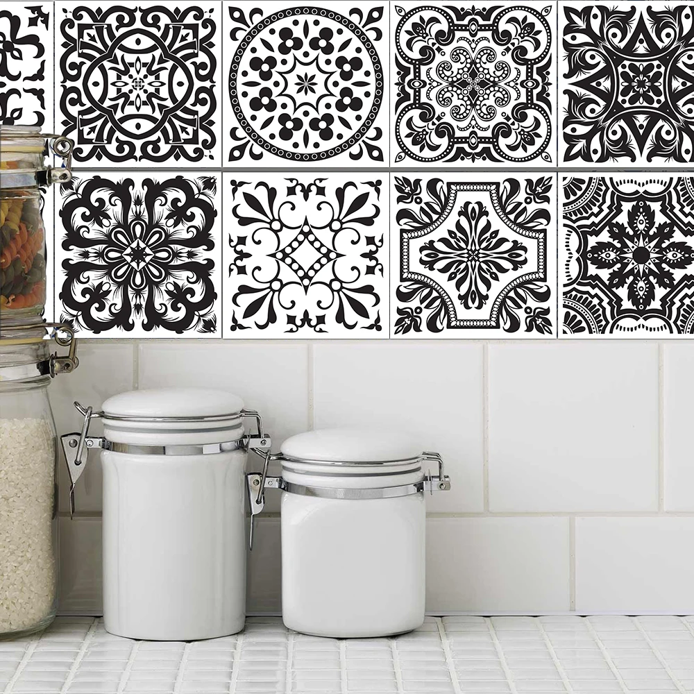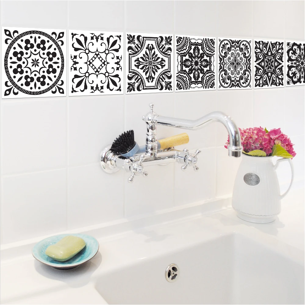 Черно-белая наклейка для плитки Funlife на заказ 1015202530 см, настенные наклейки, украшение для дома, водонепроницаемые обои, 10 шт. в упаковке