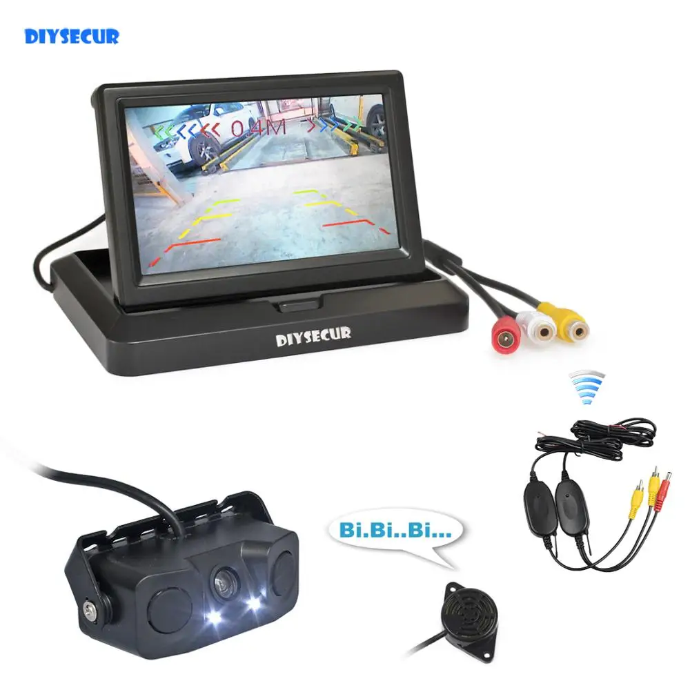 Беспроводной комплект автомобильной камеры заднего вида DIYSECUR, 5 дюймов, резервный монитор, датчик парковки, радар, 2 в 1, система парковки