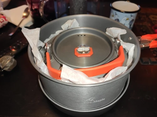 Странно только одно, если вложить чайник в котелок, крышка не закрывается плотно. Огромный вопрос производителю, а что нельзя было котелок сделать повыше на 6 миллиметров?!? В остальном всё шикарно!!!!