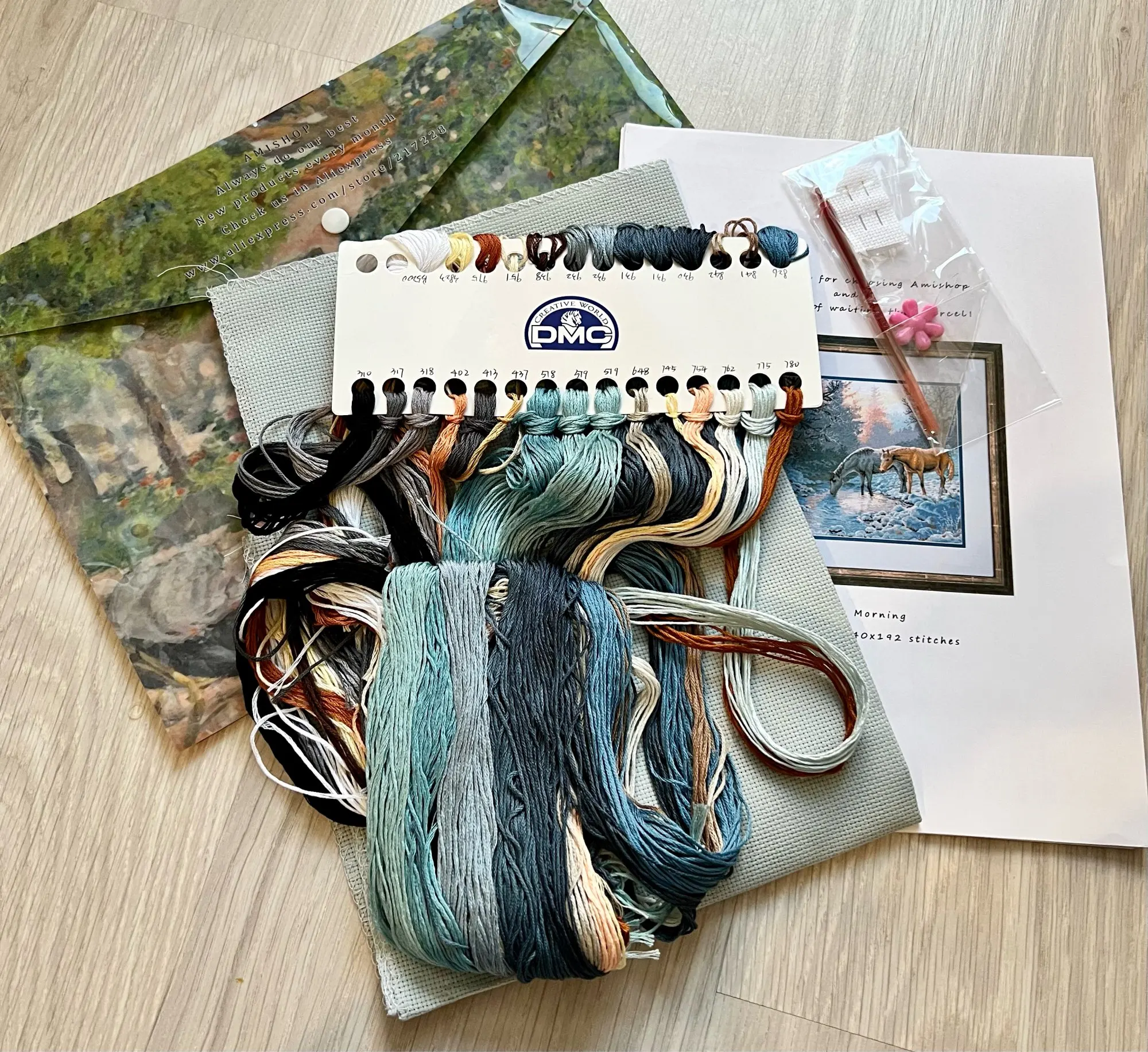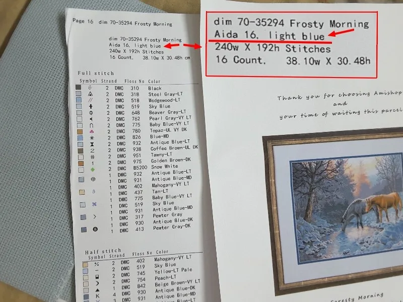 Посылка отслеживалось, пришло быстро около трёх недель. Набор отличный, схема схожа с оригиналом, напичатана на крепких листах ( не глянцевая ), крупная распечатка просто супер, нитки не проверила но кажется есть различие по оттенку. И ещё канва пришла какая-то серая, я думала придёт светло голубая, в описание вроде так и написано.