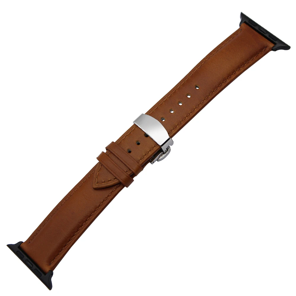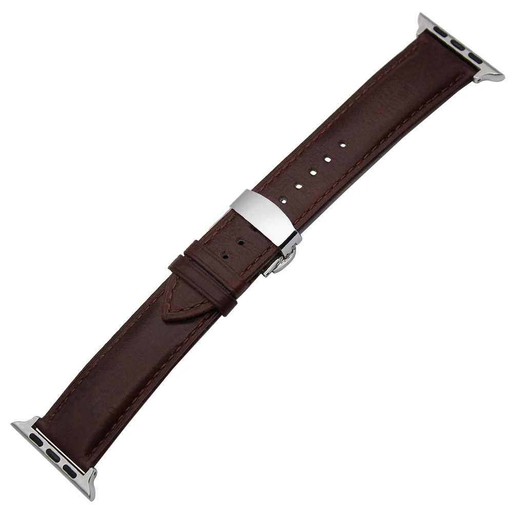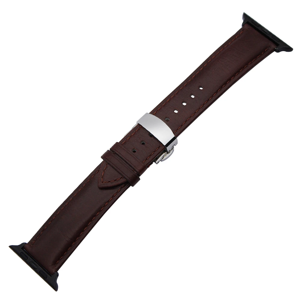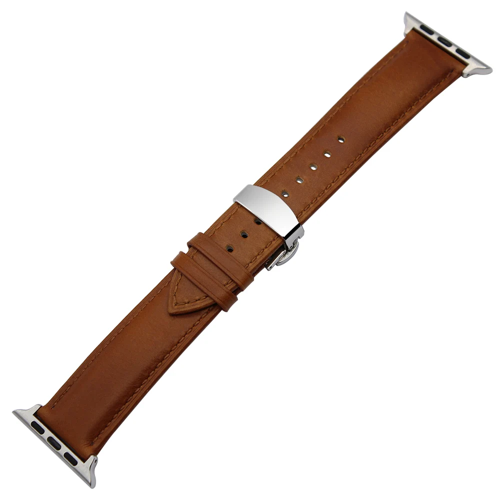 Ремешок итальянский из натуральной кожи для iWatch Apple Watch SE Series 6 5 4 3 2 1 38 мм 40 мм 42 мм 44 мм с застежкой-бабочкой