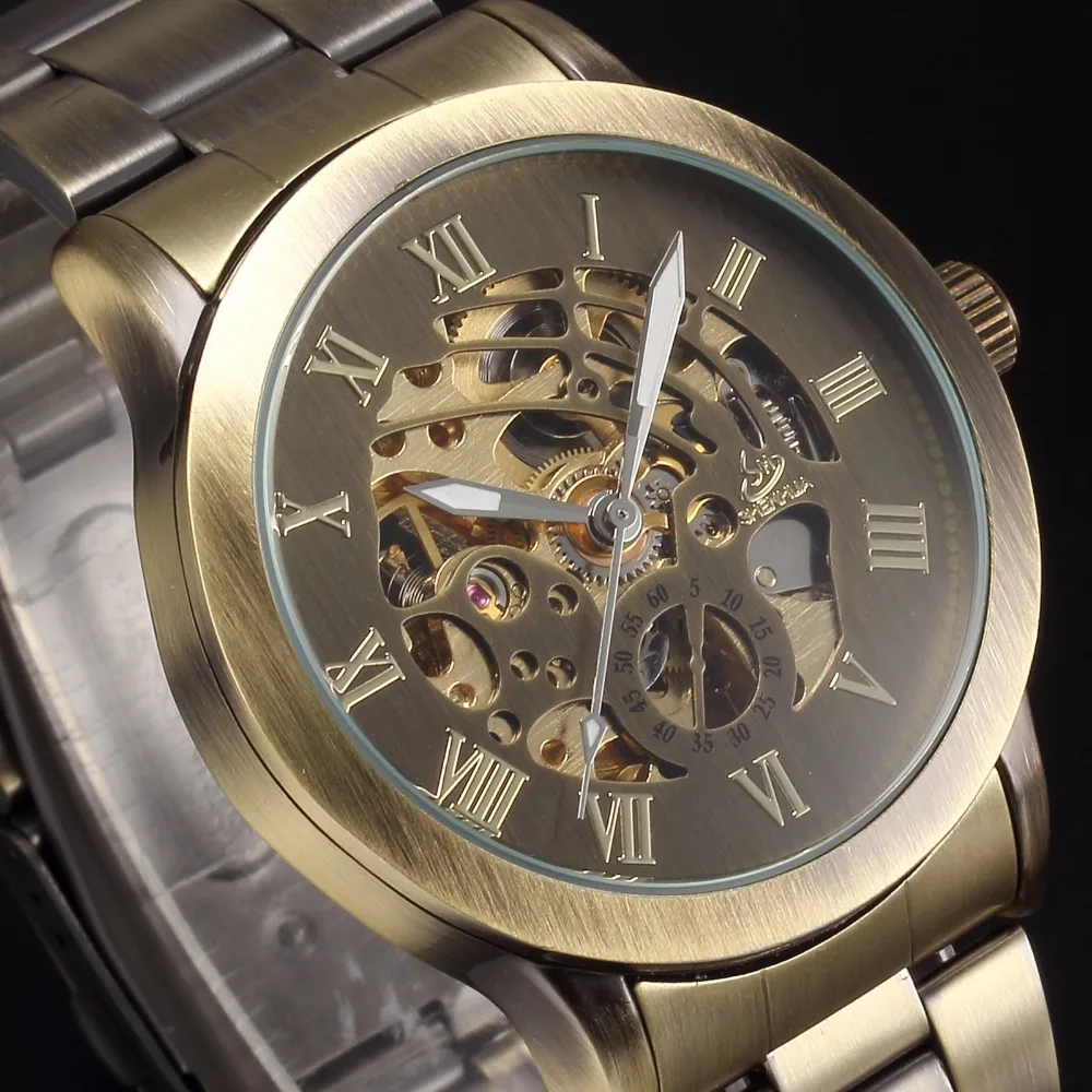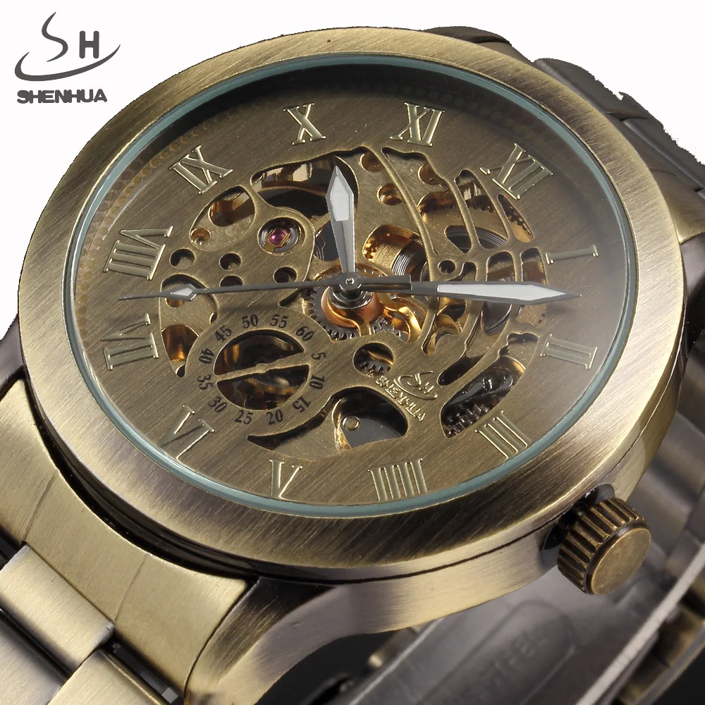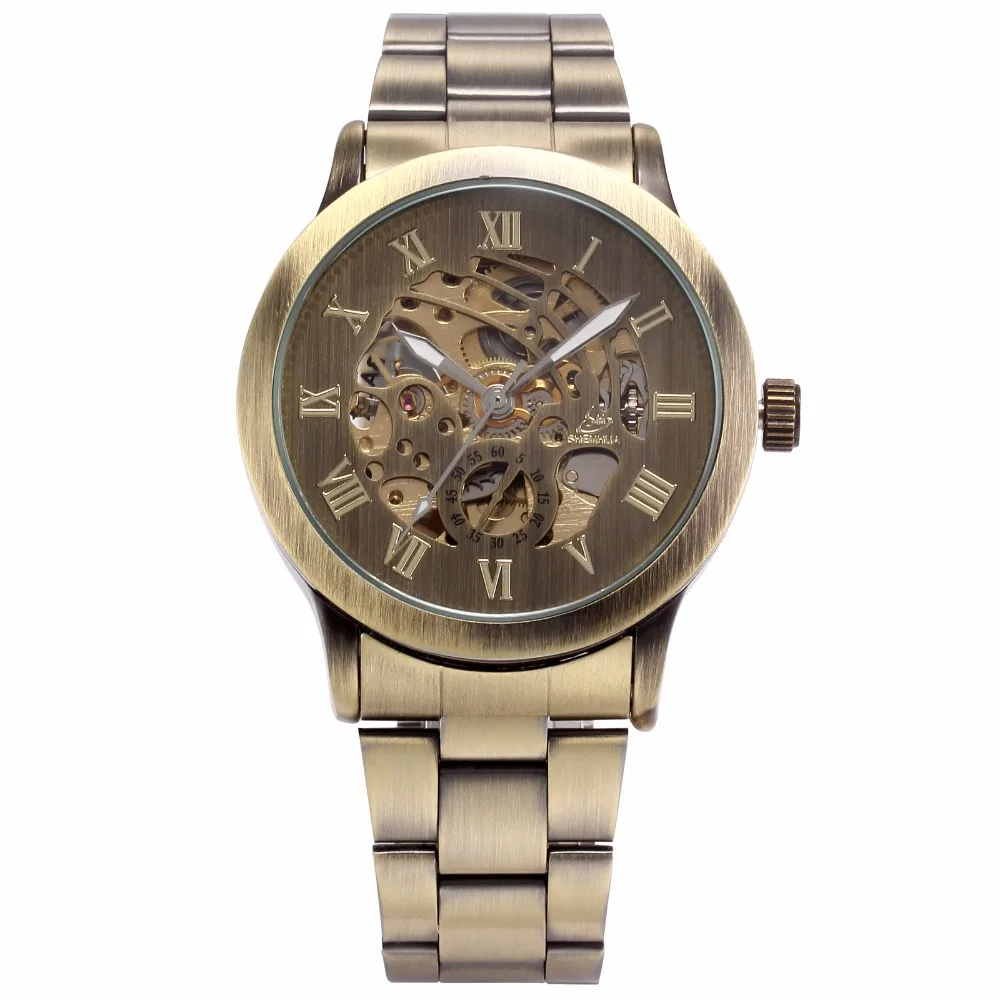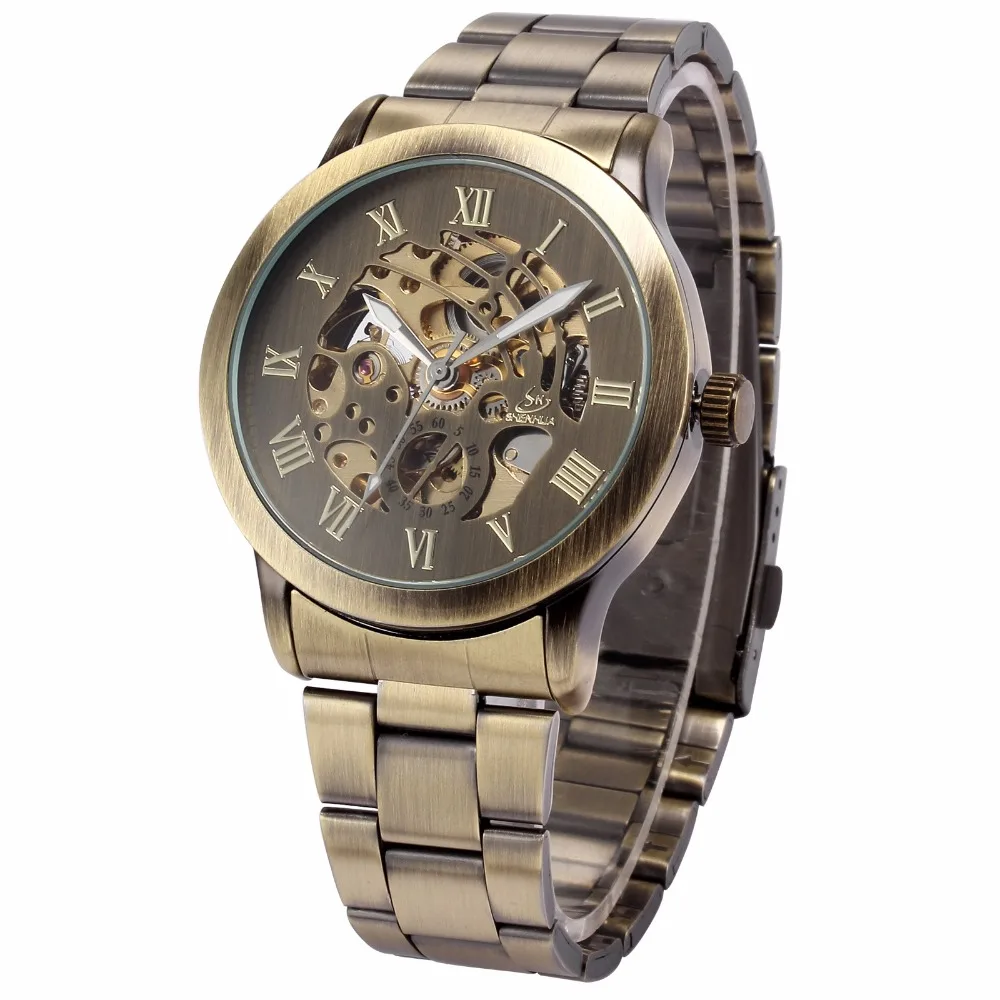 Часы мужские механические в стиле стимпанк, винтажные Автоматические наручные часы-скелетоны под бронзу