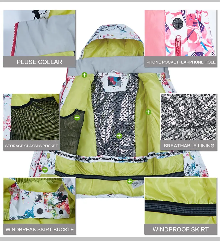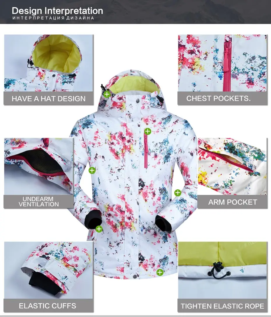 Женский лыжный костюм, брендовая зимняя высококачественная теплая водонепроницаемая ветрозащитная одежда, зимние штаны и куртка, костюмы для катания на лыжах и сноуборде
