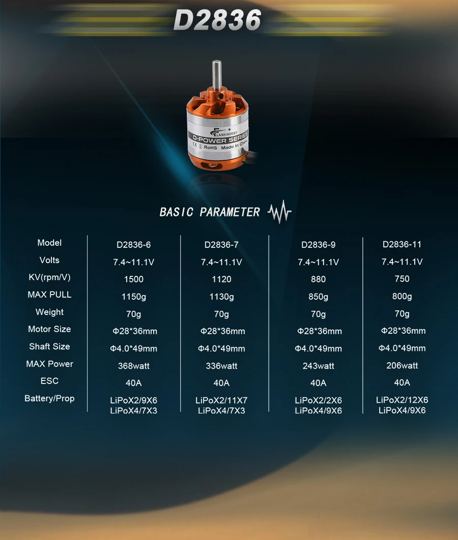 Бесщеточный мотор с внешним ротором для радиоуправляемых лодок и самолетов FLASHHOBBY D2836 750KV 880KV 1120KV 1500KV 2-4S