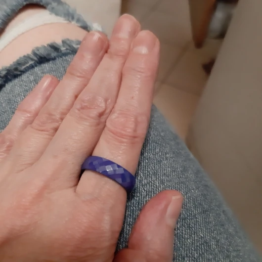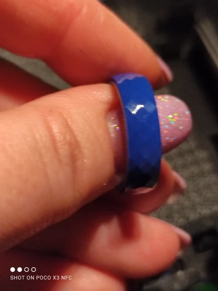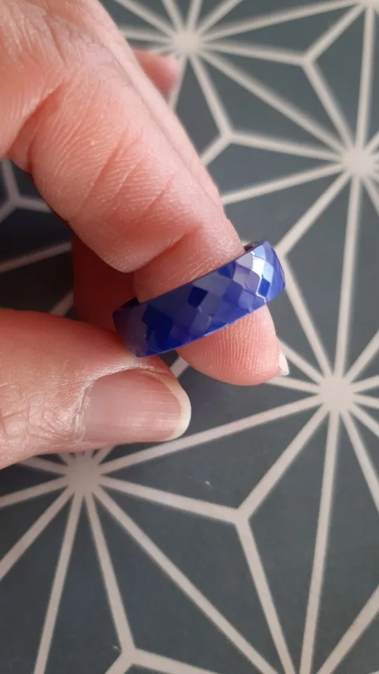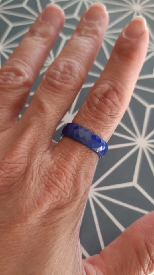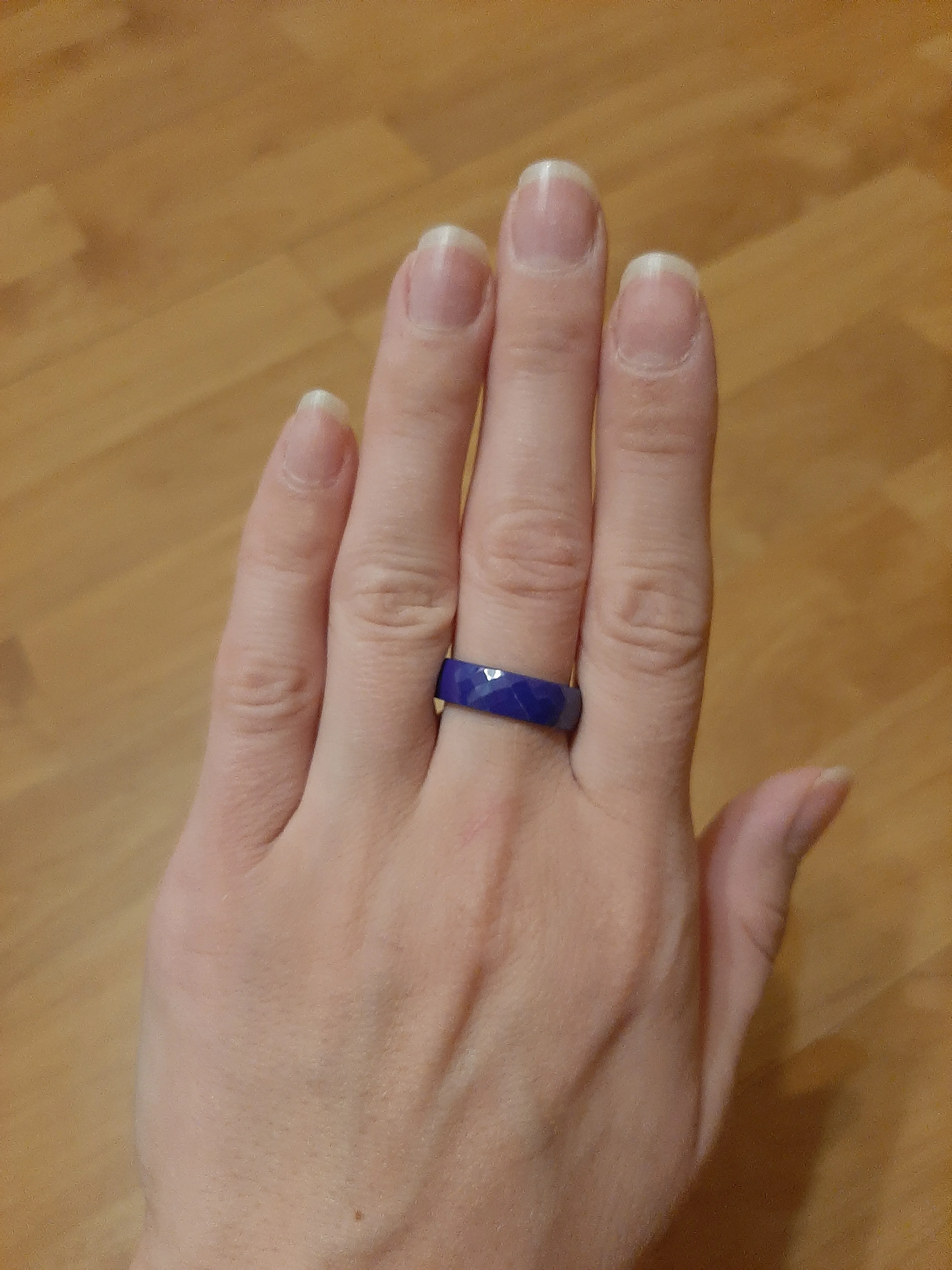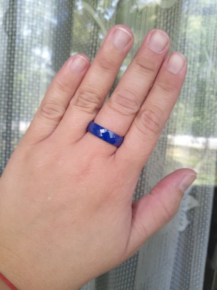 кольцо ярко-синее, думала будет темнее, как на фото. Размер 10 подошел на мой 19.5