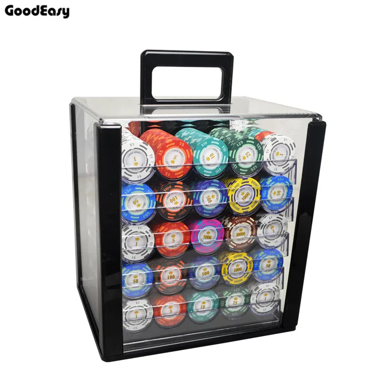 Наборы фишек для покера, металлические монеты с акриловой коробкой и подносом, для казино, Техасский Холдем, баккара, черный Джек, доллар, 600 шт.1000 шт.