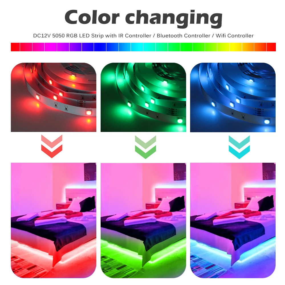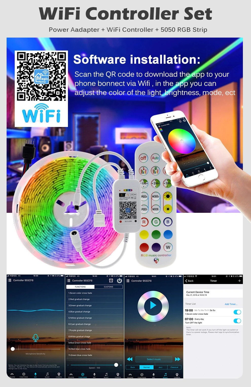 Светодиодная лента Wi-Fi 5050 RGB 5M10M15M20M30M DC12V неоновая лента + ИКBluetooth Wi-Fi пульт дистанционного управления + адаптер питания для украшения дома
