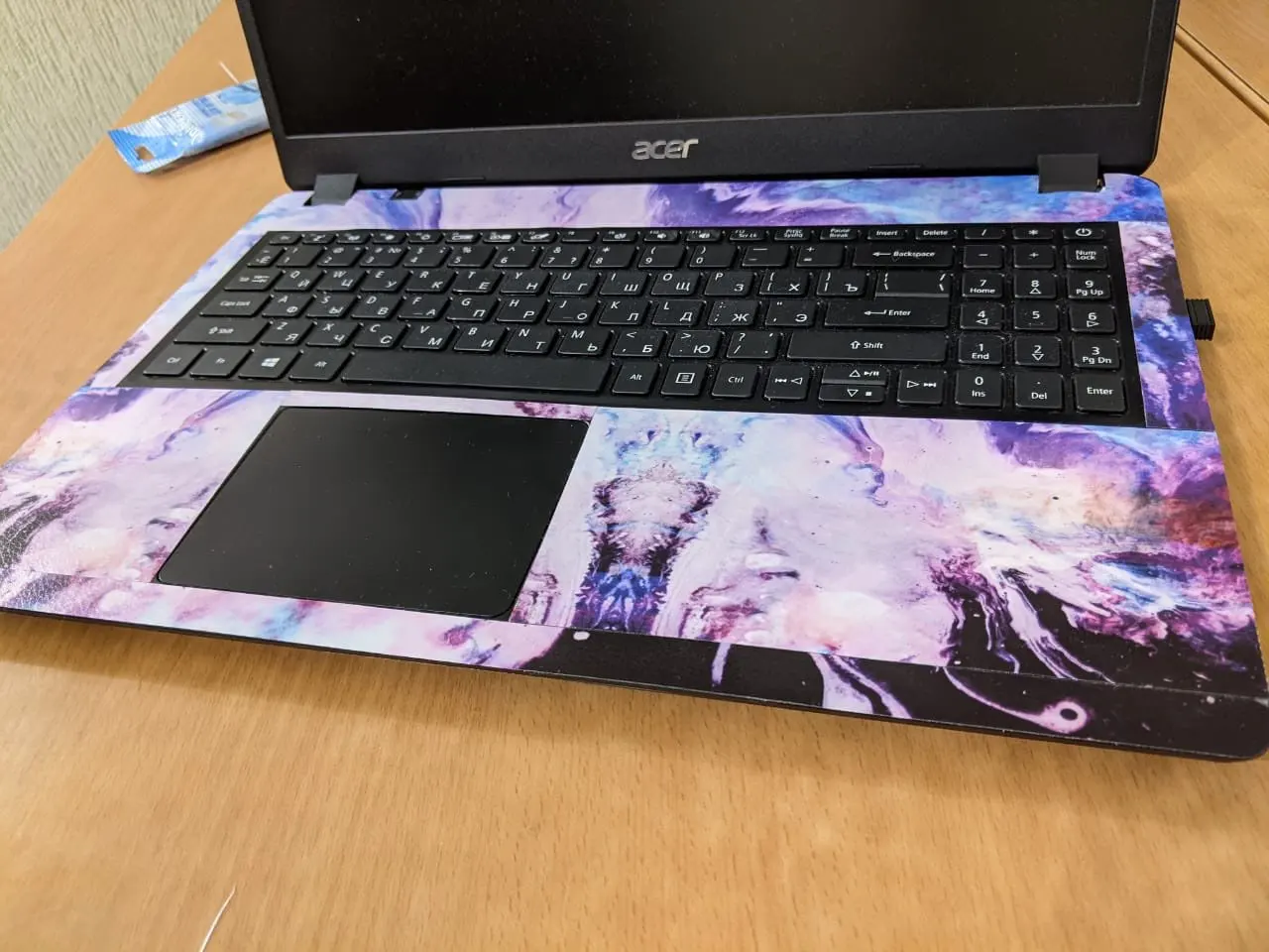 На мой асус вивобук 15 дюймов не подошёл. Нужно обрезать наклейку.