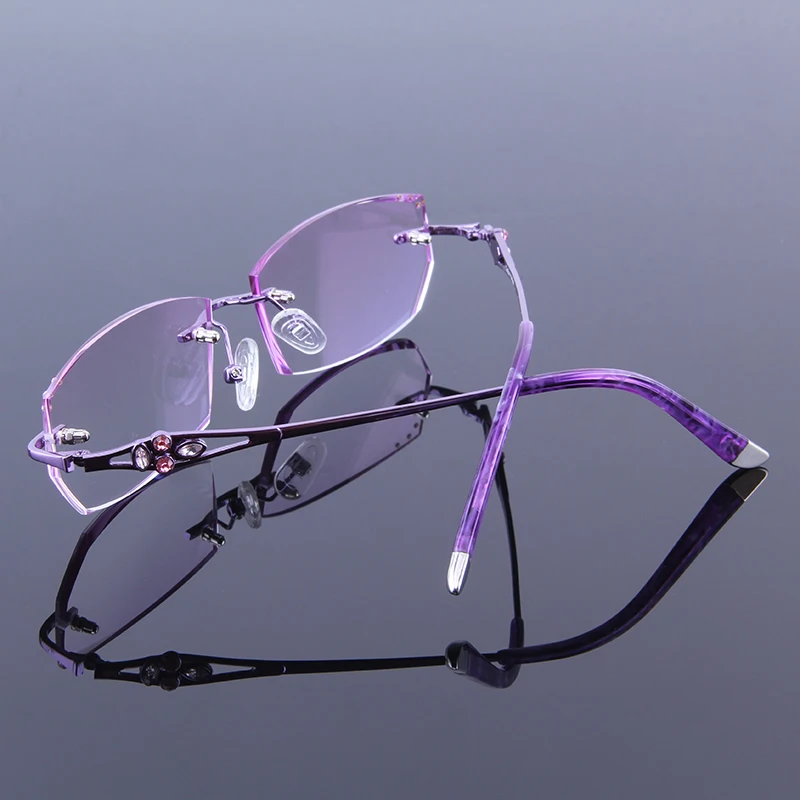 Женские прозрачные очки для чтения, роскошные стразы, очки без оправы, женские очки для дальнозоркости, фиолетовые очки для дальнозоркости