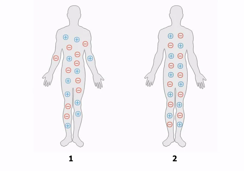 1. Перед ношением: тело расстроено, и двигательные функции ограничены. 2. После ношения: сбалансирует отрицательные и положительные ионы. Помогает восстановить баланс вашего тела
