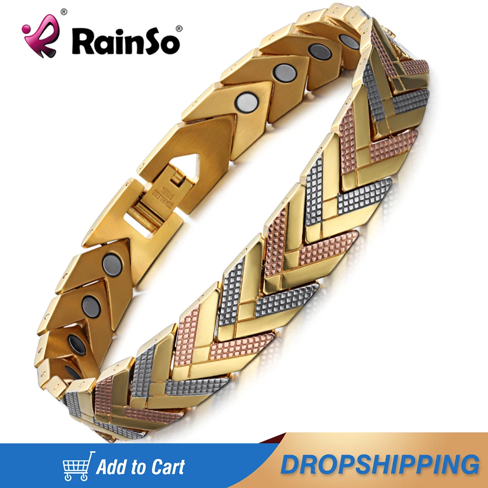 Женский магнитный браслет Rainso Health, браслет из нержавеющей стали с биоэнергией, золотые модные ювелирные изделия 2020