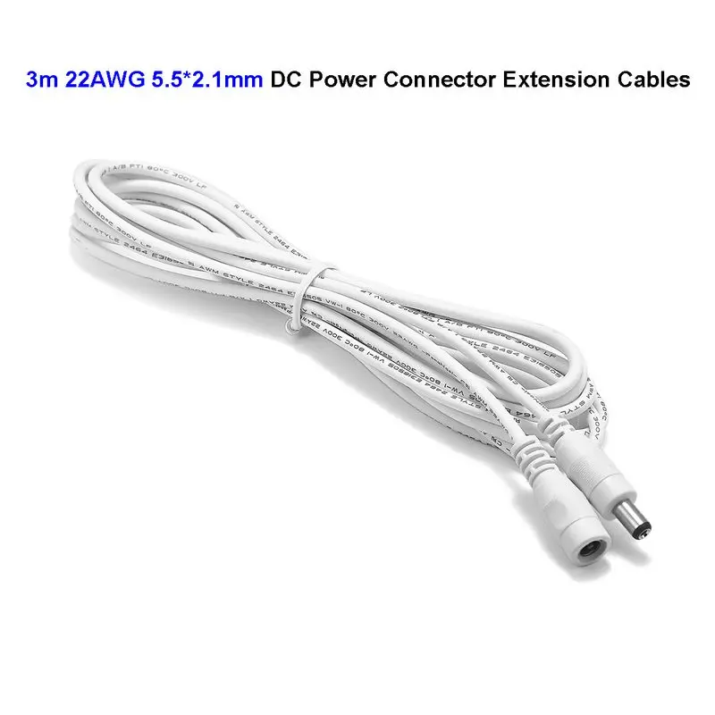 100% абсолютно новый разъем питания постоянного тока удлинитель провода Тип кабеля: 22AWG/20AWG 80 °C 300V Внешний диаметр: 5,5 мм Внутренний диаметр: 2,1 мм Материал проводника: Луженая медь Изоляционный материал: ПВХ Длина кабеля: 50/100/150/200/250/300/500/1000 смПосылка включает в себя: