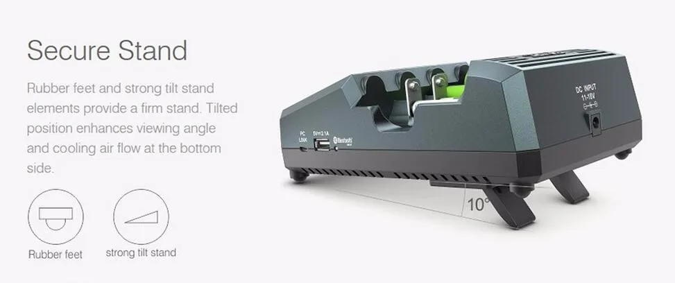 Очень достойное ниверсальное зарядное. Из замеченных минусов : занижает измеренную ёмкость примерно на 5-7%, требуется калибровка по току и напряжению. В сети есть видео по этому поводу. Блютус очень удобная вещь, после него не очень хочется работать через достаточно сложное меню самого устройства. Требуется смазка держателей-плохо ходят без нее.
