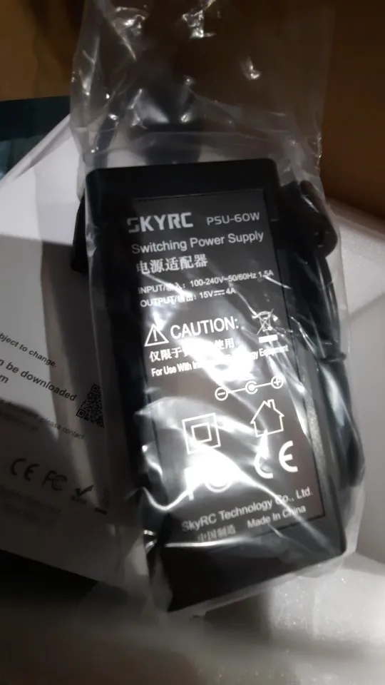 Доставлено до Обнинска за три недели. Оригинальная коробка слегка была помята, но все целое. Зарядка последней версии с 2 вентиляторами и последней прошивкой 1.15. Все работает. Единственно что немного озадачивает это блок питания SkyRC, при заявленных 15В 4А выдает без нагрузки 12,2В :/