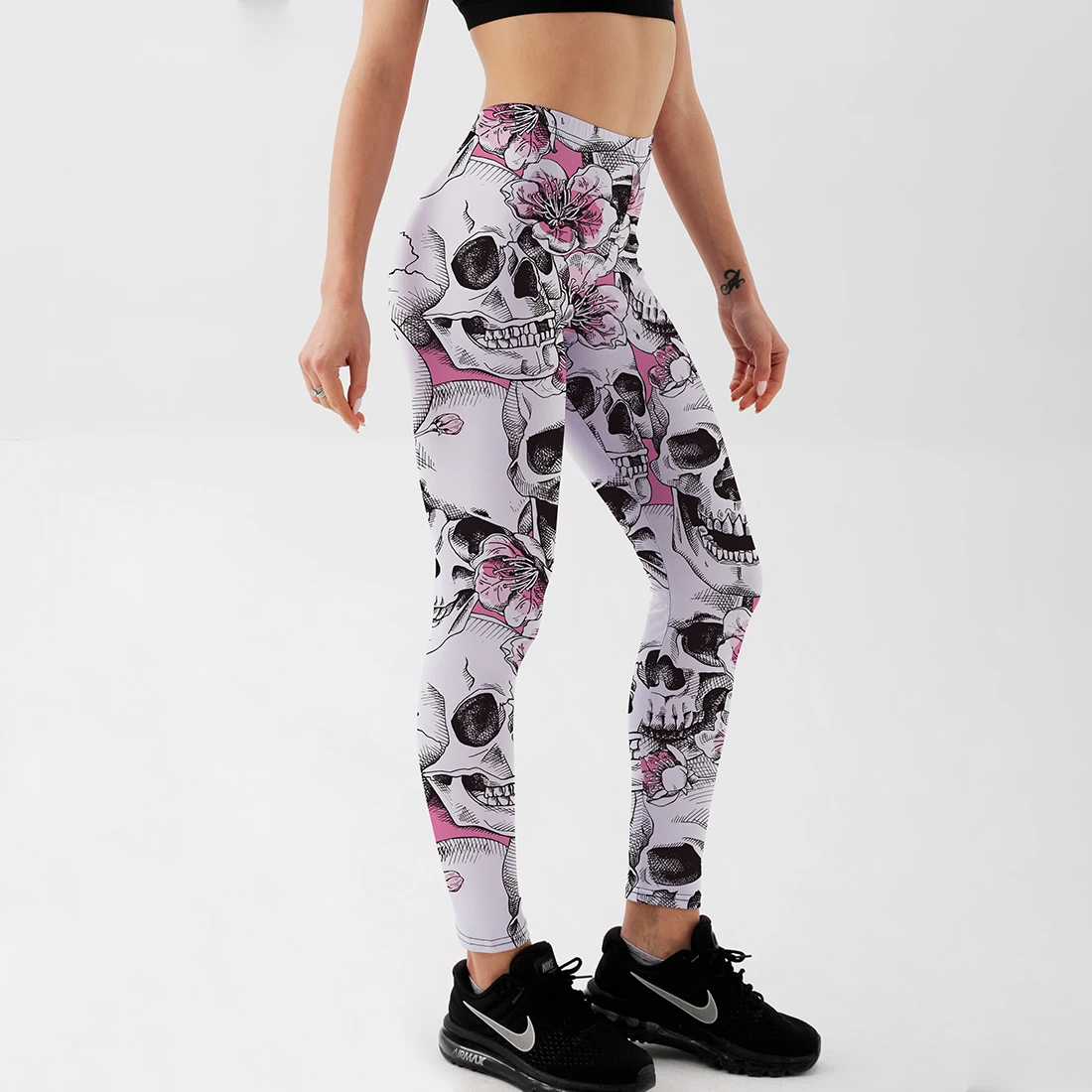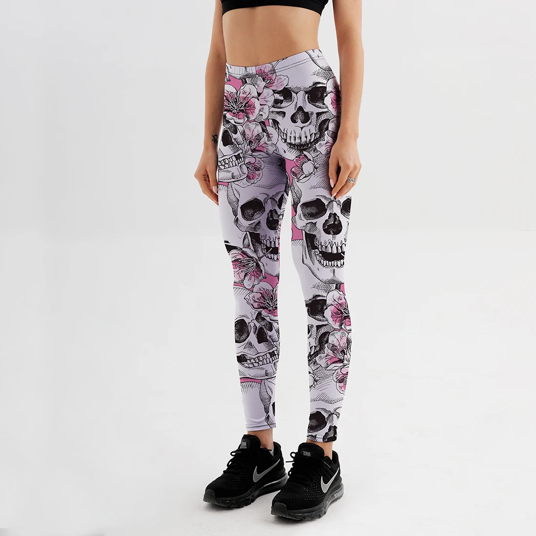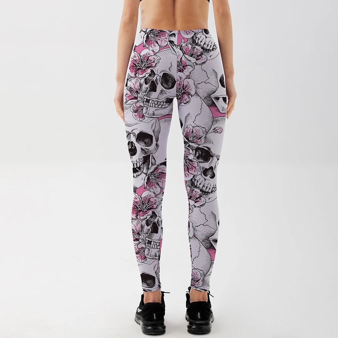 Женские леггинсы стрейч Qickitout, с черепом и цветами персика, брюки стрейч, оптом