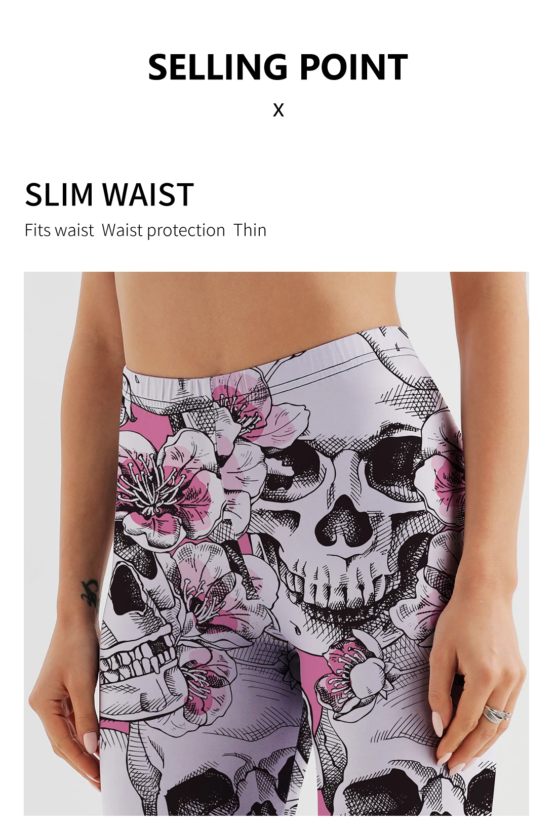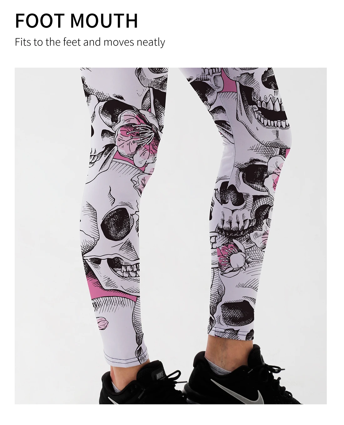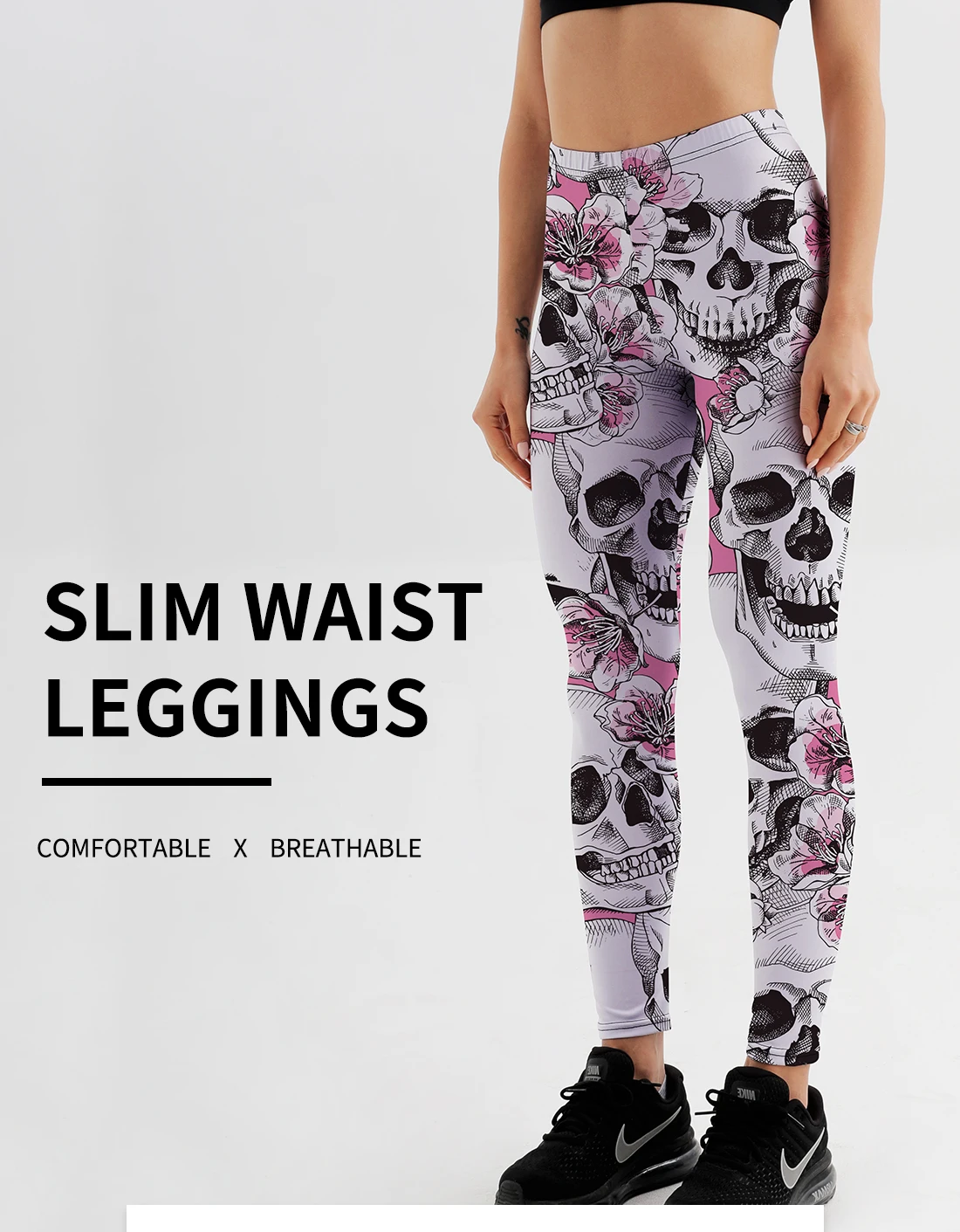 Женские леггинсы стрейч Qickitout, с черепом и цветами персика, брюки стрейч, оптом