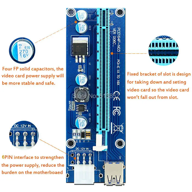 006C PC PCIe pci-e PCI Express Riser Card 1x к 16x USB 3.0 кабель SATA к 6Pin IDE Molex Питание для БТД Шахтер машина райзер