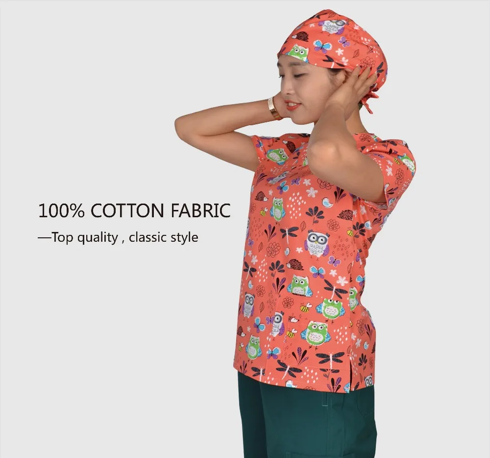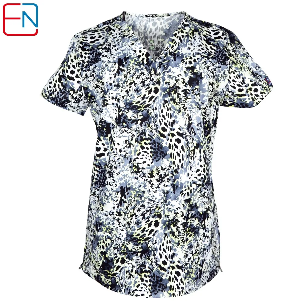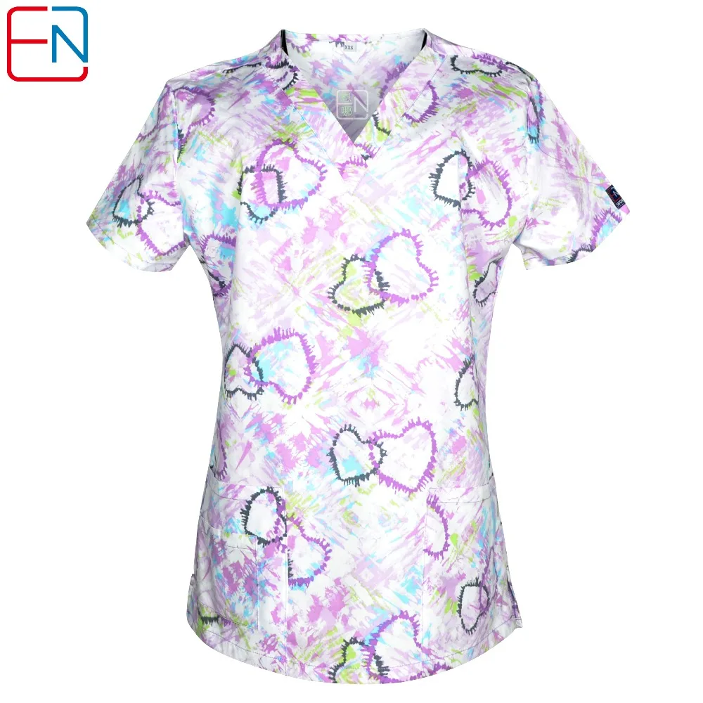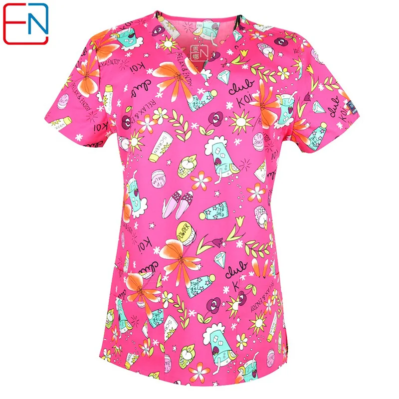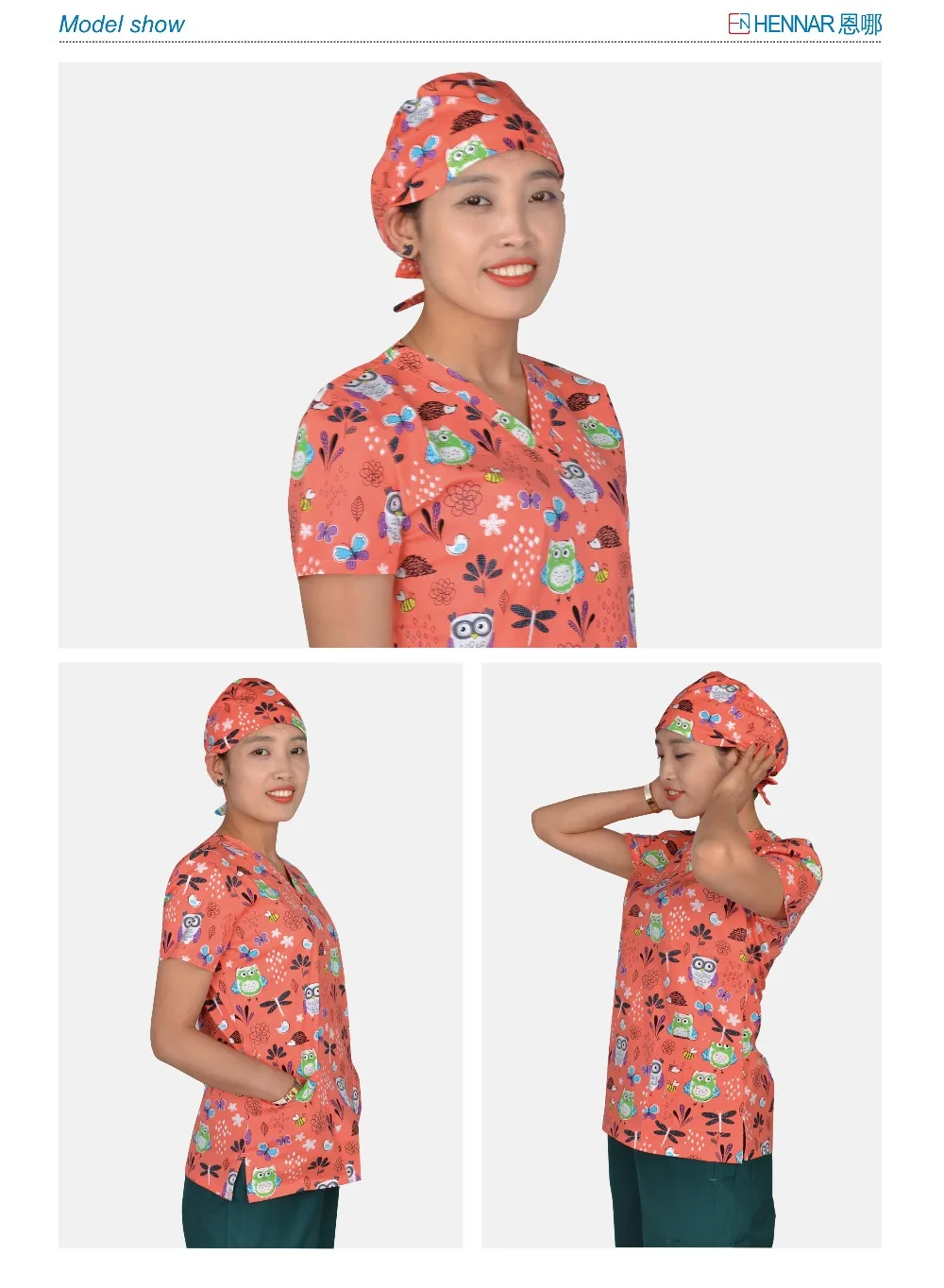 Hennar Женские печатных м б форменной одежды, принт с героями мультфильмов скраб-топ с коротким рукавом и v-образным вырезом 100% сапоги из флока с ажурной кромкой на верхней части