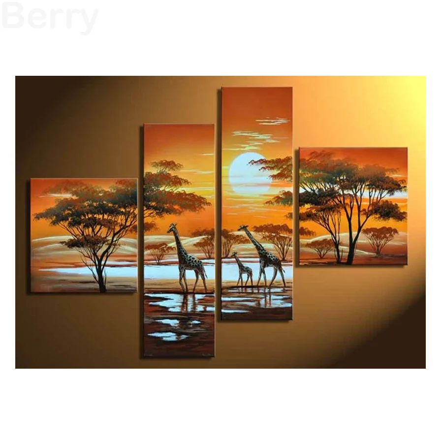 5d алмазная вышивка Diy 4 шт./компл. пейзаж дерево Жираф Искусство Ручная работа diy 5d алмазная живопись Домашний декор настенные картинки стикер