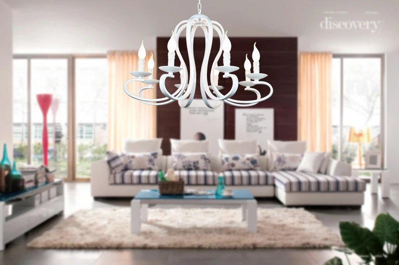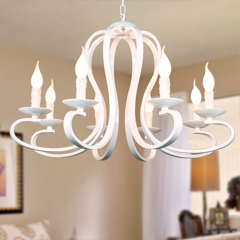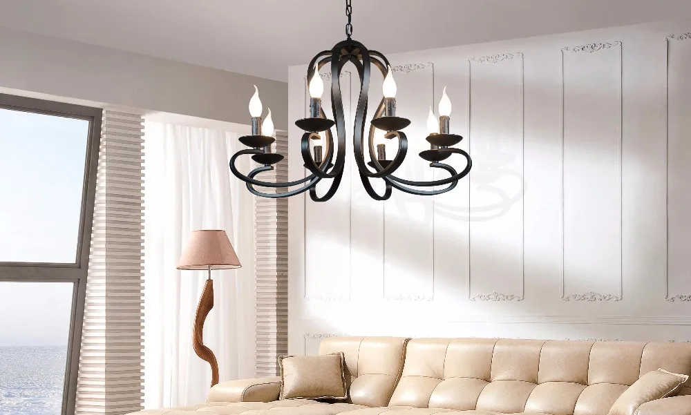 Светильники в скандинавском и американском стиле, современная люстра со свечами, винтажные, белыечерные, из кованого железа, для домашнего освещения, Е14