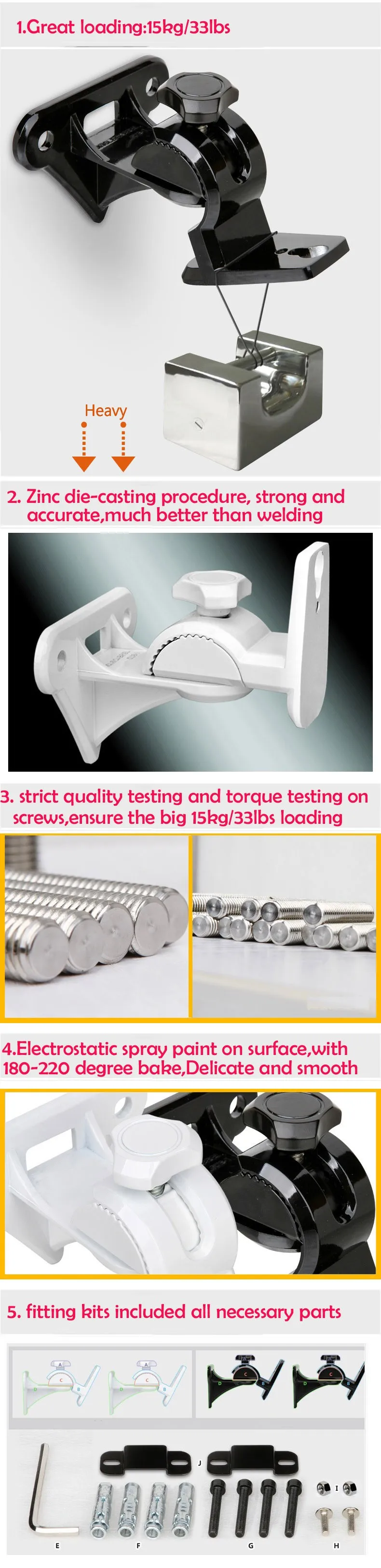 Универсальный настенный кронштейн GU8W для динамиков, из цинкового сплава, нагрузка 15 кг, 33 фунта, 1 шт.