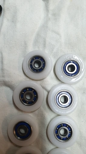 Хорошие ролики. Заводской смазки очень мало, долго не прослужат. Вскрывал каждый подшипник и набивал смазкой. Из 40 заказанных подшипников одно защитное кольцо почему-то было полукольцом ( поставил со старого) и в другом подшипнике из 7 шариков было только 6.