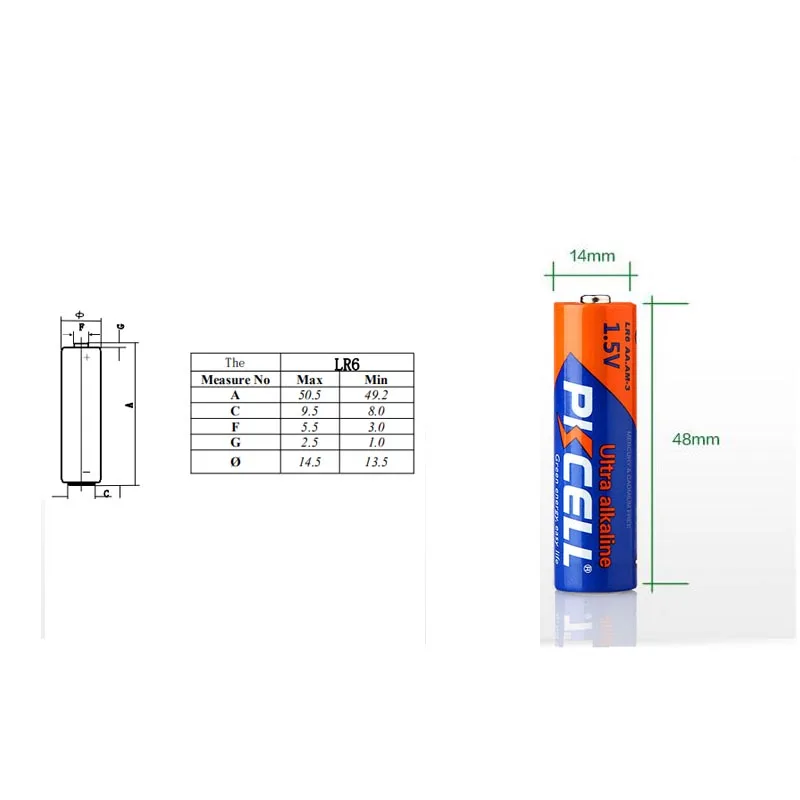 48 щелочных сухих батарей большой емкости PKCELL AA 1,5 В LR6 MN1500, первичные батареи AA для камеры, фонарика, клавиатуры