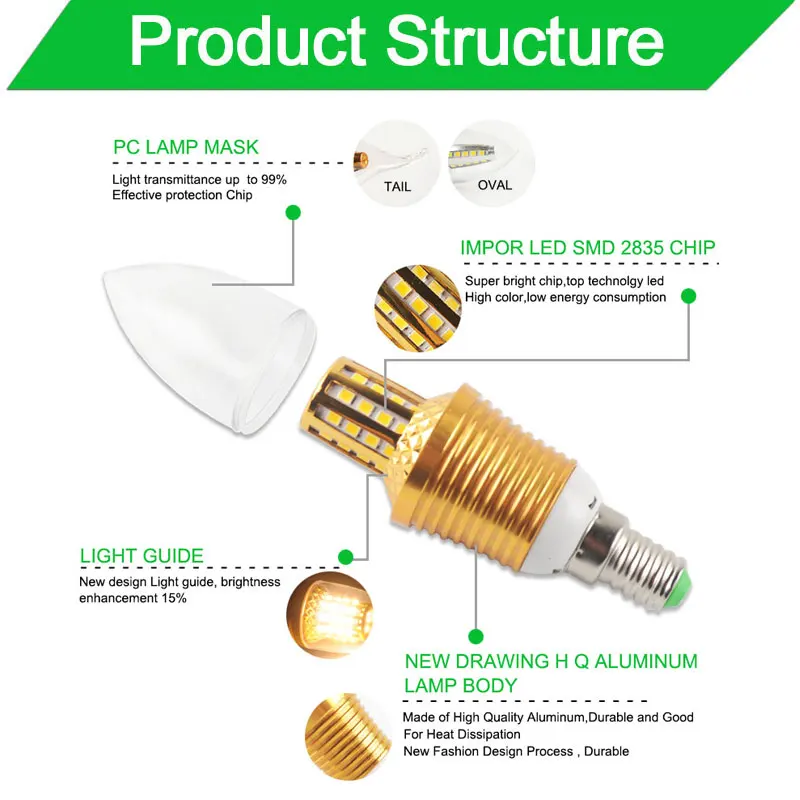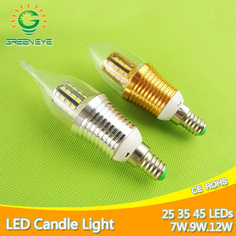 Светодиодная лампа E14 в алюминиевом корпусе, 7 Вт, 9 Вт, 12 Вт, светодиодная лампа 220 В, 240 в, золотистый, серебристый, холодный теплый белый свет