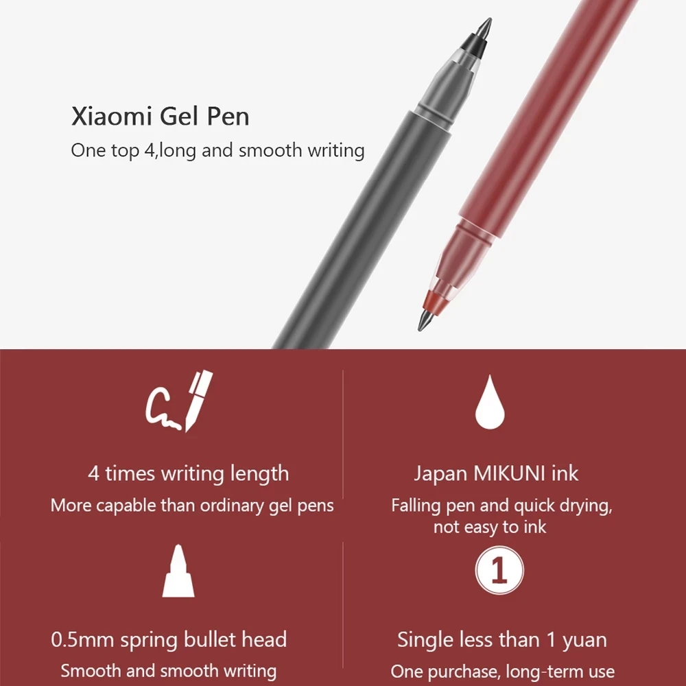 10 шт. Xiaomi сверхпрочная ручка для письма 0,5 мм гелевая ручка ручки для подписи гладкие швейцарские стержни красные черные чернила Шариковая ручка