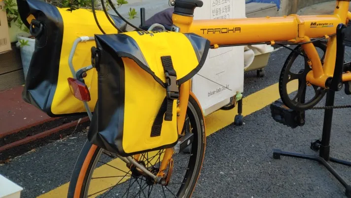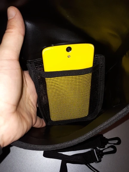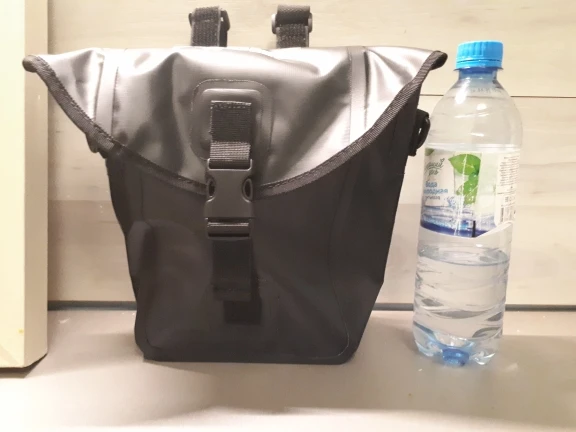 Хорошая легкая непромокаемая сумка с простой застежкой. Точно не промокнет под любым дождем, а доступ к вещам внутри легче чем на сумках с закруткой или молнией. Небольшая - по высоте 0,5л воды впритык, с термосом 0,5 не закроется нормально. Но объемистая - влезла куртка от дождя, мини-пуховик, перчатки, телефон, и еще место осталось. Стенки без смягчения, просто толстая клеенка. Внутри есть сетчатый карман, наверное для клуча или карточек - для телефона 6" он короткий. Крепление на руль на 3 липучках, не сильно удобно, но штош - зато легко и просто. Липучки кстати хорошие. А вот пряжка на которую застегивается сумка - не очень, я ее заменю на более плавно закрывающуюся и крепкую от старого рюкзака Polar. Ремешок для переноски на плече ок, но опять же пряжки не очень удобные. В целом сумка такая как ожидал, меня устраивает.
