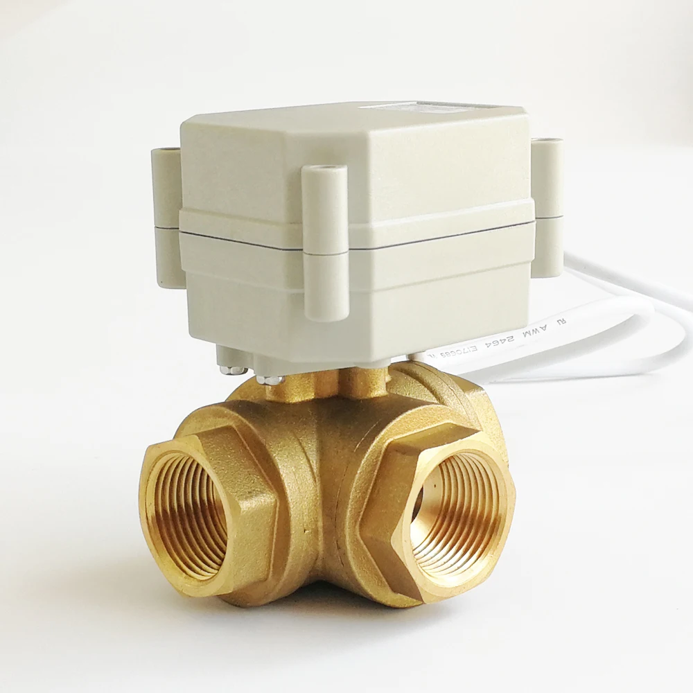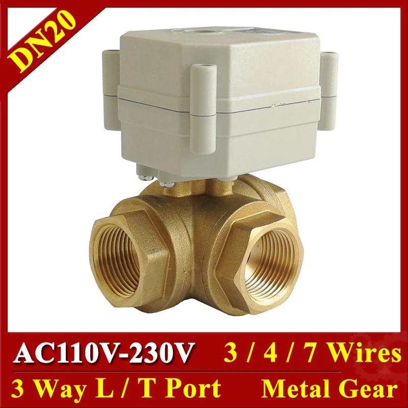 34 "AC110-230V горизонтального типа 3 способ Электрический духовой клапан, DN20 347 провода шаровых клапан для воды смешивания