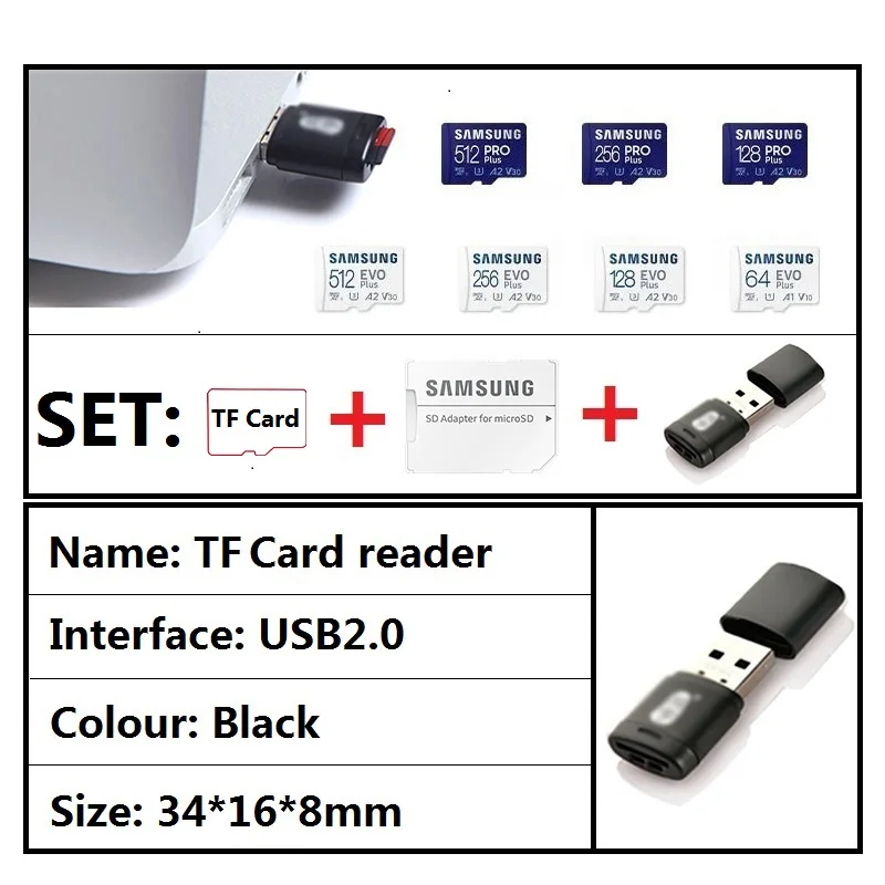 SAMSUNG PRO EVO Plus Micro SD карта памяти, 128 ГБ256 ГБ512 ГБ, TFU34K