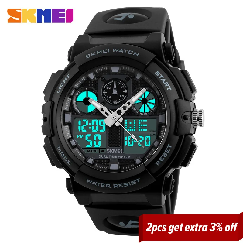 SKMEI Для мужчин спортивные часы цифровой двойной время хронограф 50 м водонепроницаемый неделю Дисплей Наручные часы Relogio Masculino 1270
