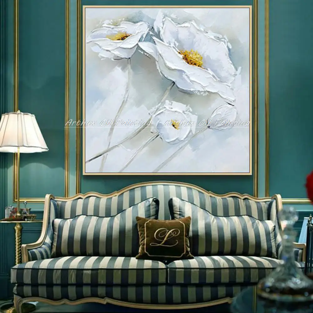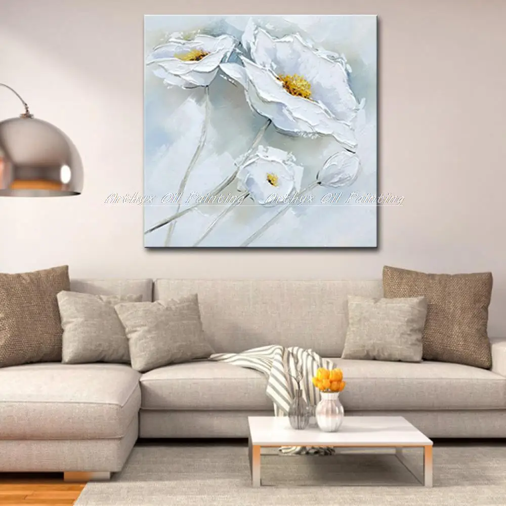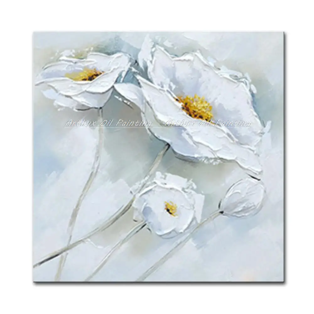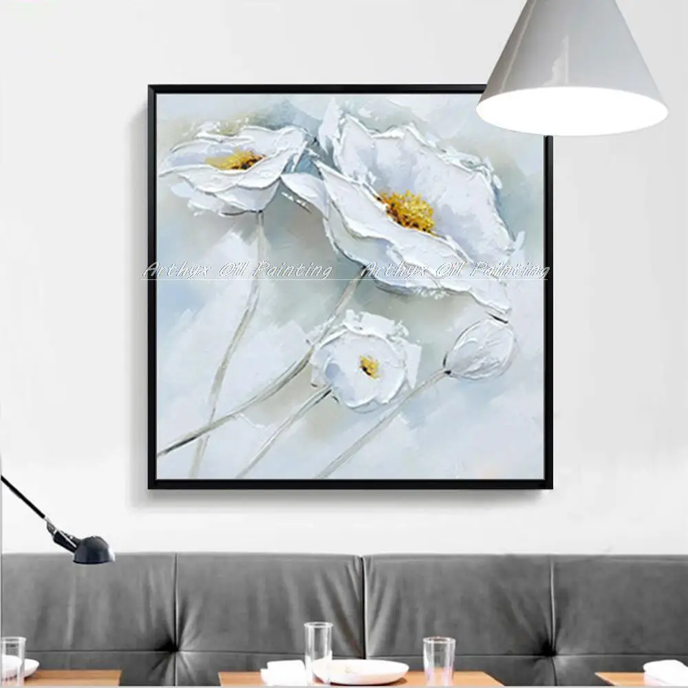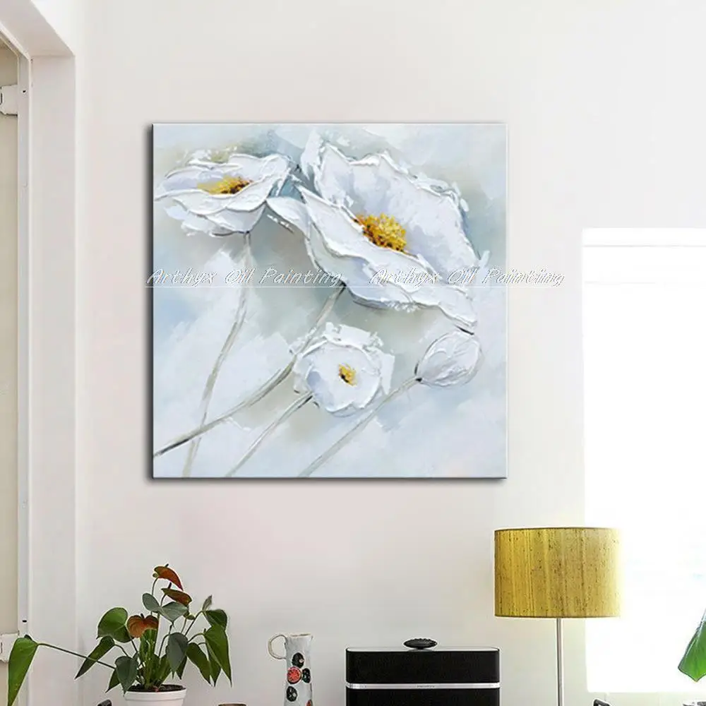 Arthyx Картины Ручная роспись белый цветок картина маслом на холсте Настенная картина для гостиной украшение дома без рамки подарок