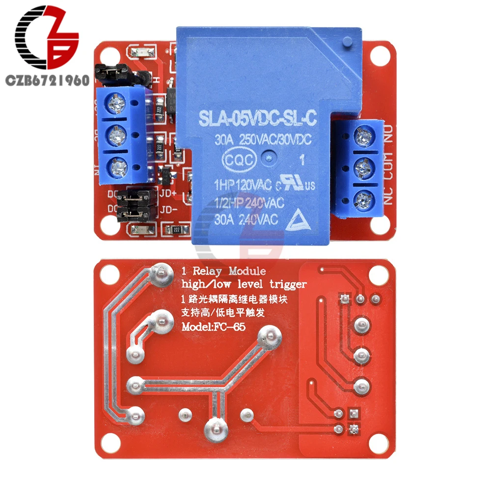 Релейный модуль 30 А 5 В, 1-канальный с оптопарной изоляцией, триггерное реле высокогонизкого уровня для Arduino