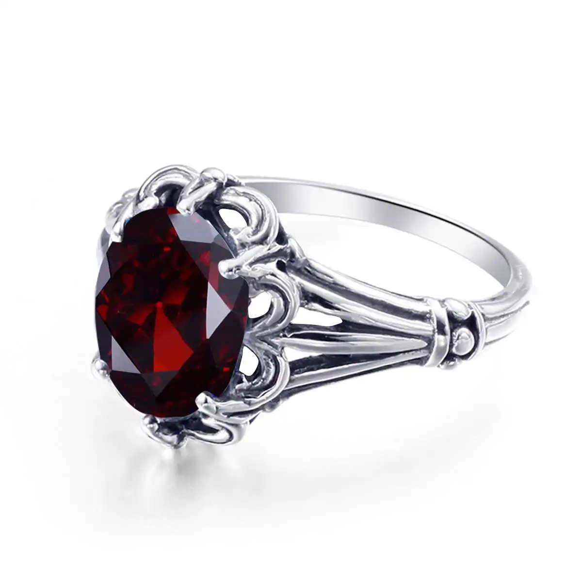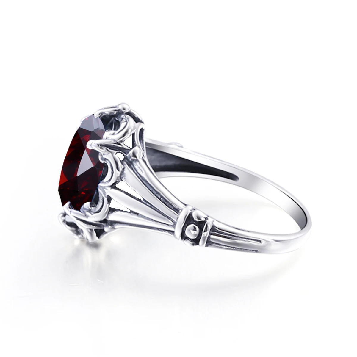 Металл: 100% 925 пробы сереброКамень: синтетический гранатРазмер камня: 8*10 ммЦвет камня: темно-красныйЦвет металла: античное сереброСтиль: винтажныйШтамп: 925Вес: 3,9 г