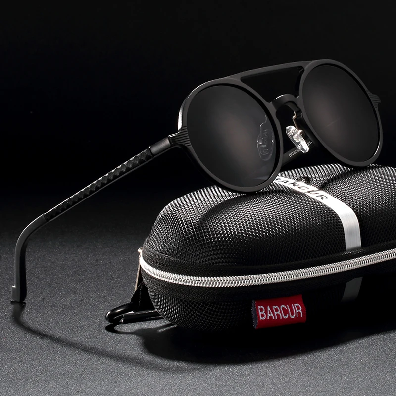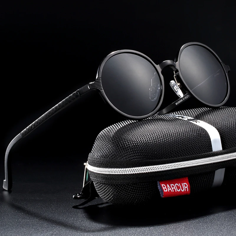Солнцезащитные очки BARCUR мужские, Круглые, черные, винтажные, в стиле ретро, UV400