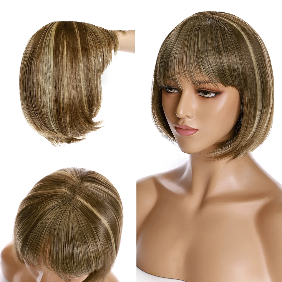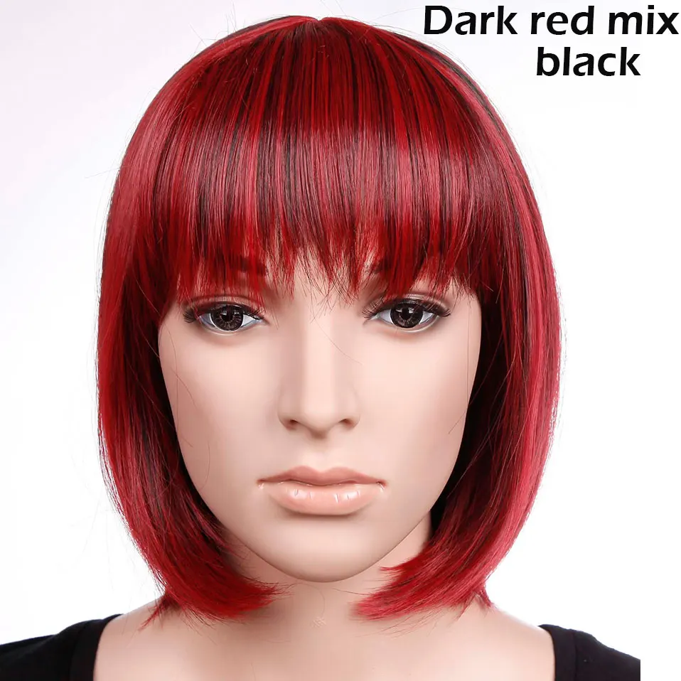 SNOILITE 12-дюймовые короткие прямые женские парики, Женский термостойкий синтетический парик, черный, коричневый, красный, 11 цветов, женский короткий парик