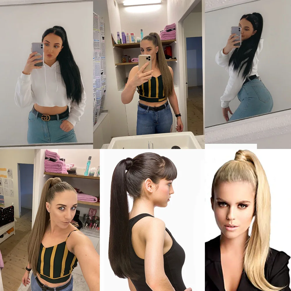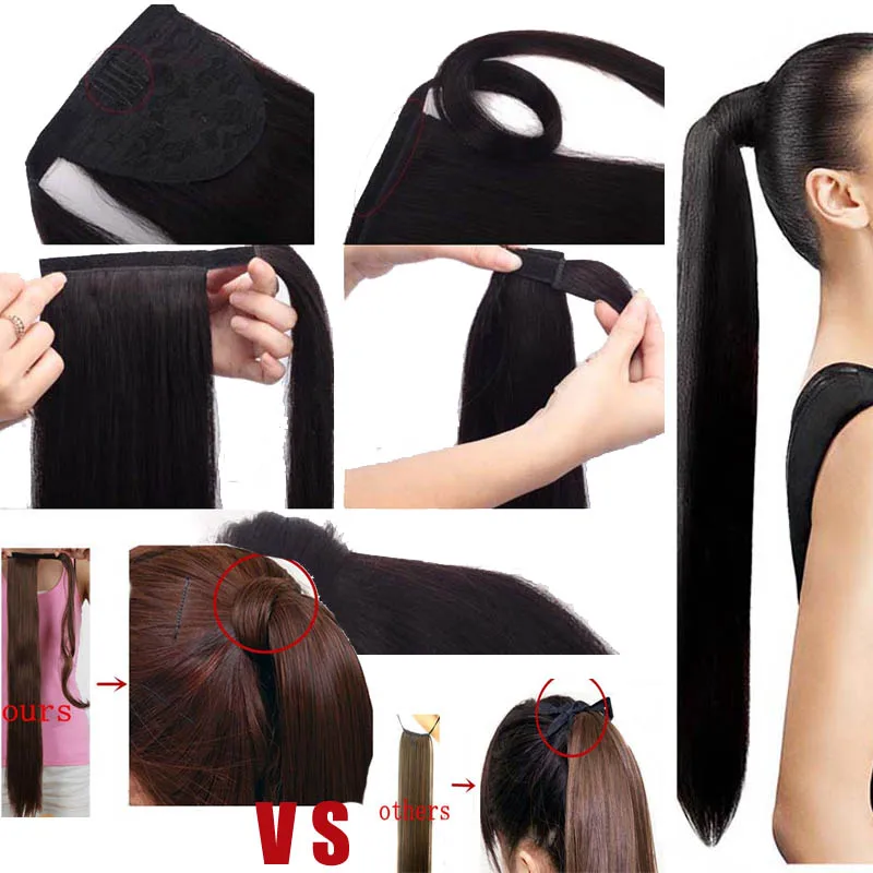 Накладные волосы Amir из термостойкого синтетического волокна, Длинные прямые накладные хвосты с Megic лентой