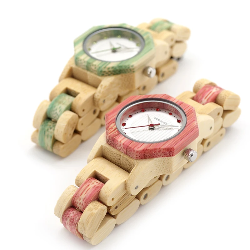BOBO BIRD Новейшие женские кварцевые часы восьмиугольник натуральные часы из бамбука чехол для женщин бренд в деревянной коробке дропшиппинг