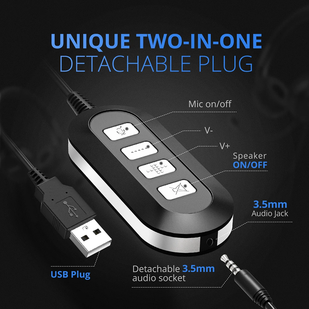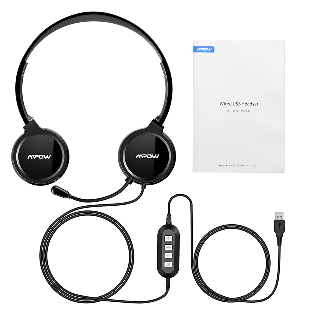 Mpow наушники с шумоподавлением, кристально чистый звук с микрофоном и проводным управлением, наушники с USBAUX кабелем для колл-центра