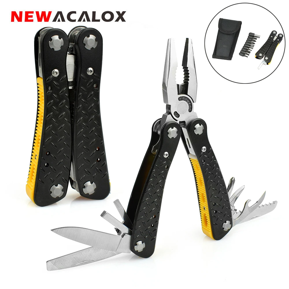 NEWACALOX карманный многофункциональный плоскогубцы многофункциональный инструмент с набором отверток, инструмент для кемпинга, нож, резак для проводов, обжимной инструмент, плоскогубцы