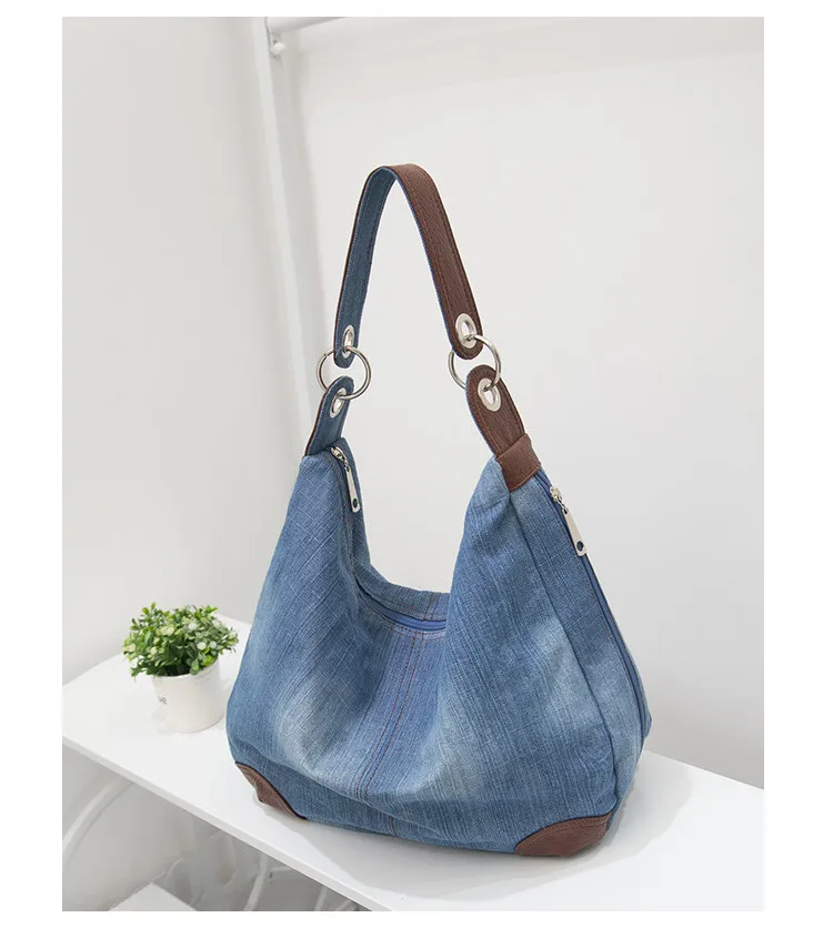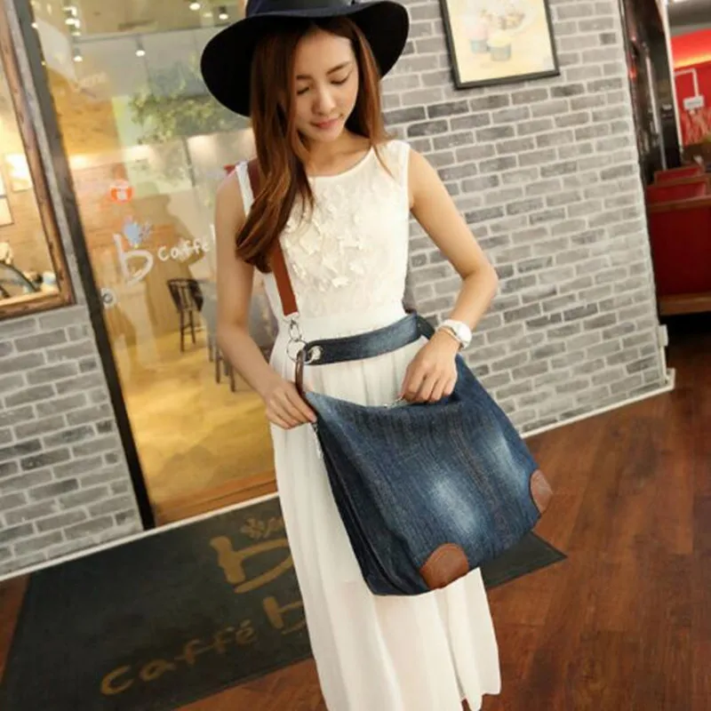 Сумка-тоут женская джинсовая, большая сумочка на плечо из денима, синяя джинсовая дамская сумка, саквояж на плечо, 2021