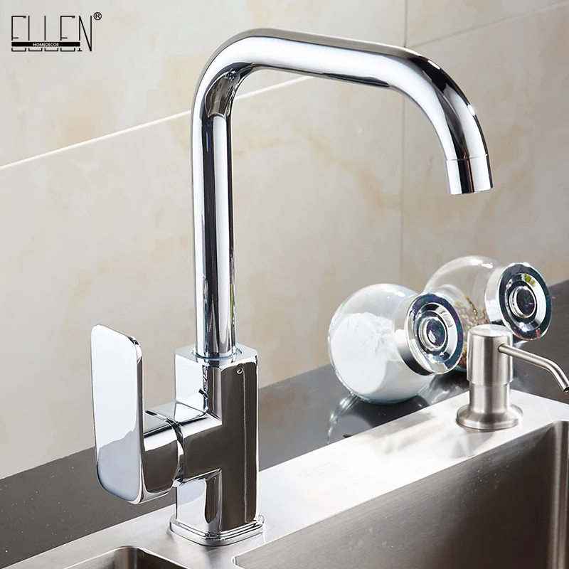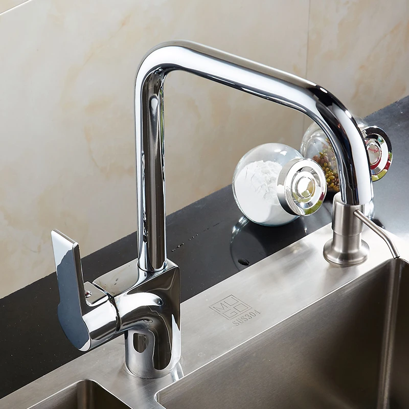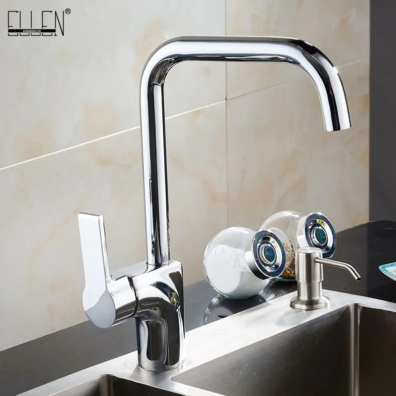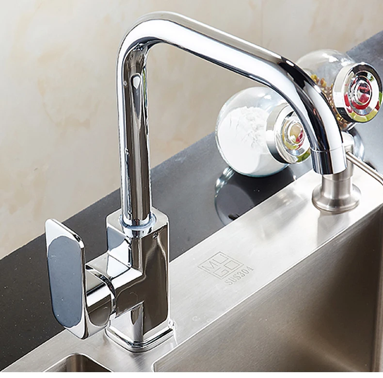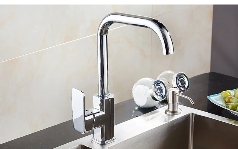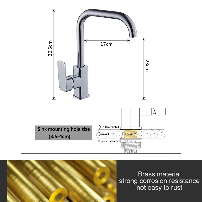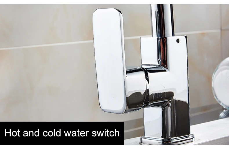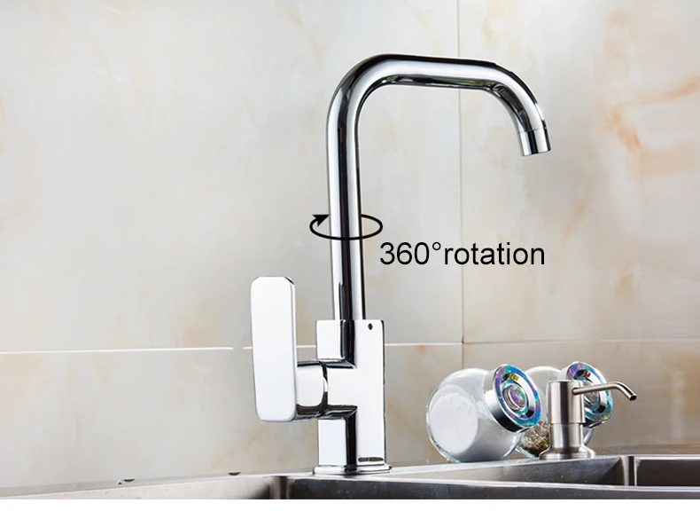 Смеситель для кухонной раковины, с одной ручкой, вращение на 360 градусов, медная хромированная отделка