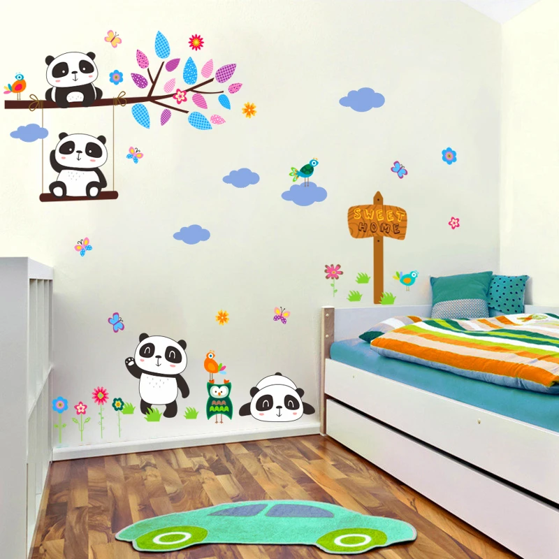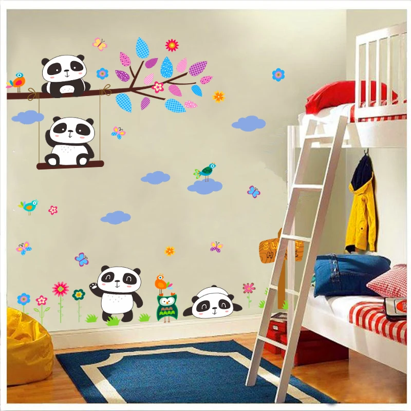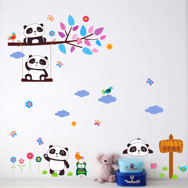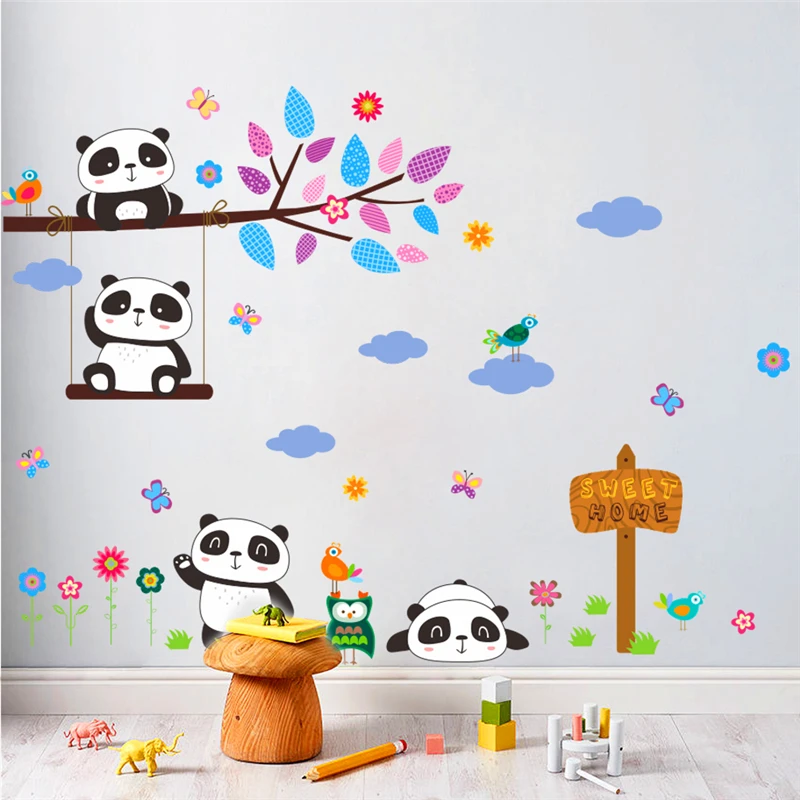 Наклейки на стену в виде милой панды в лесу для детской комнаты, декор для детской комнаты, мультяшное искусство росписи из ПВХ