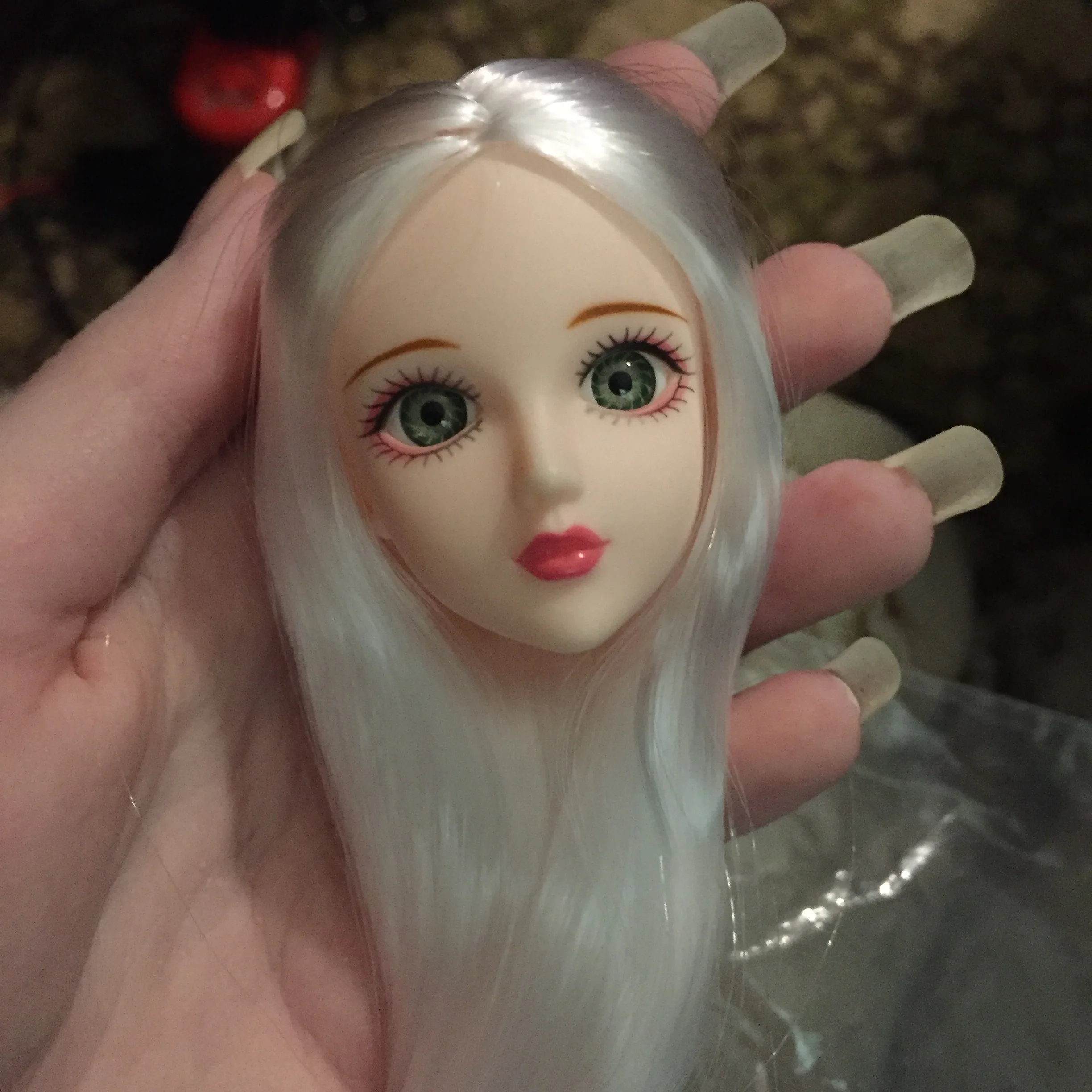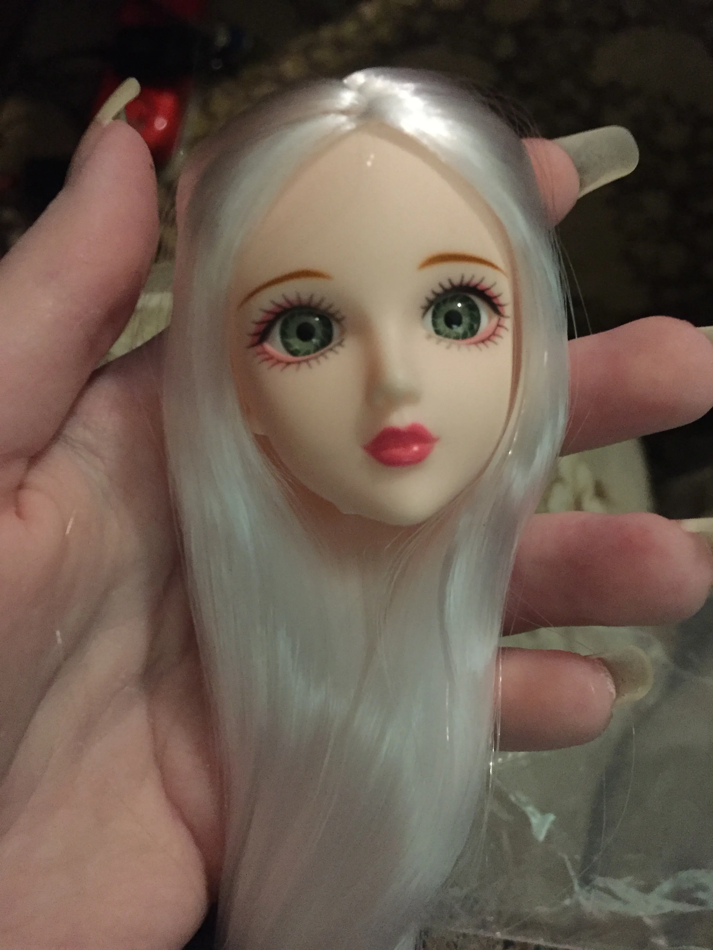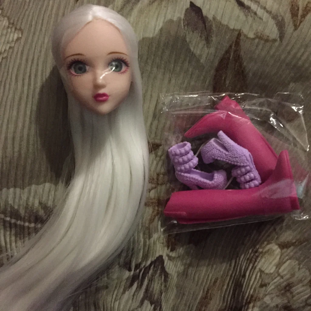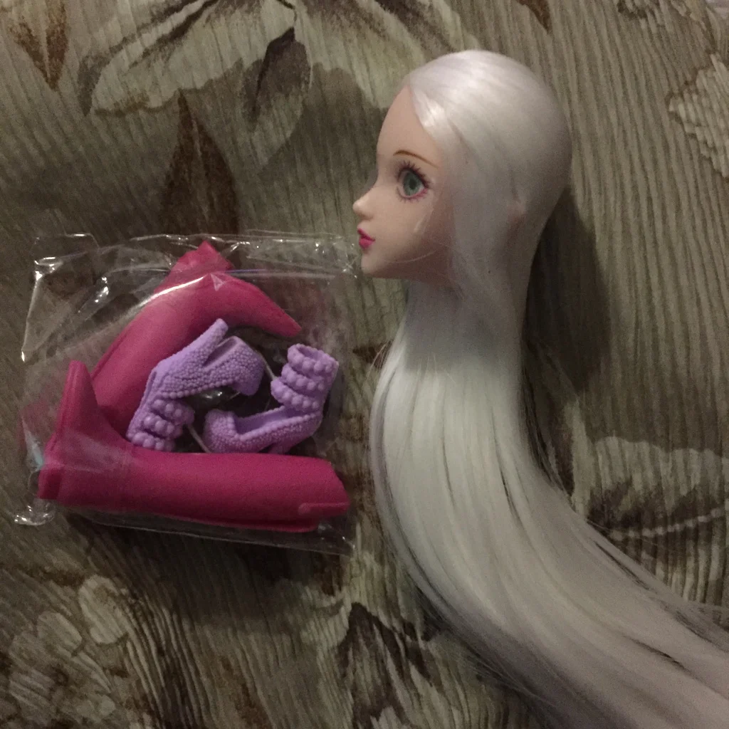 Голова очень красивая! Фантастические зеленые глаза, как живые. Шелковые платиновые волосы. Куколка получится великолепная. Посылка пришла за месяц, хорошо упакованная в плотную картоновую коробку. Продавец молодец, рекомендую и товар и магазин!