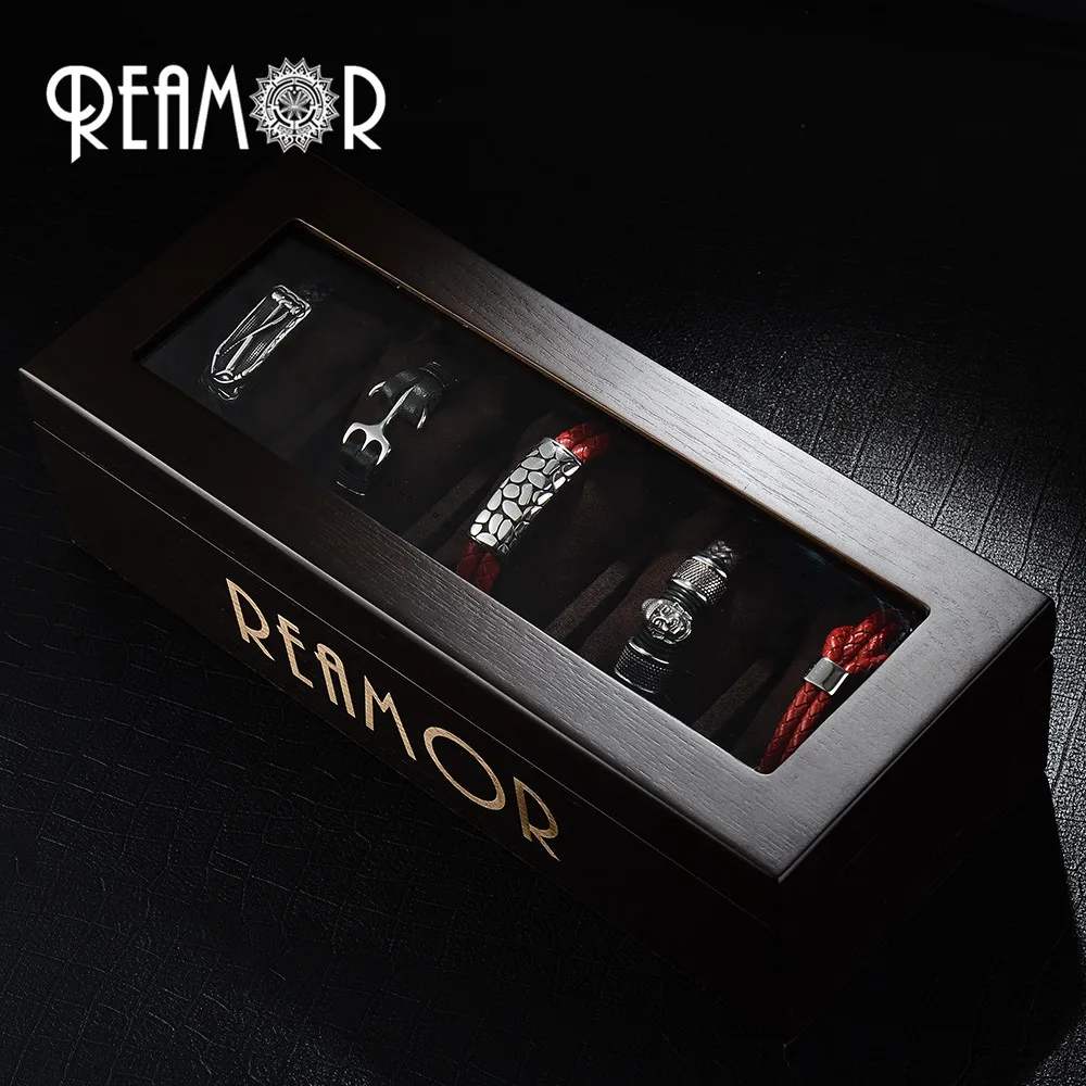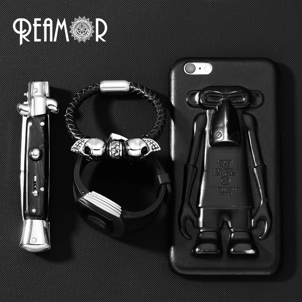 REAMOR ювелирные изделия размер отверстия 8 мм 316l браслет из кожи...