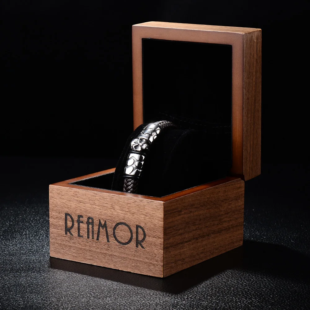 Мужской браслет с черепами REAMOR, браслет из натуральной древесины...