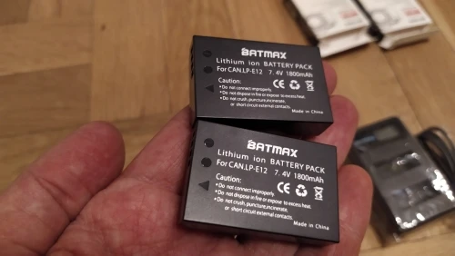 Работает с Canon m50. Получил пару аккумуляторов с зарядным устройством. Батареи были почти разряжены на 7,74 вольт. После зарядки они достигли 8,30-8,34 вольт, как и оригинальные LP-E12. Проверил обе батареи с помощью камеры-она включена, не сломалась. Я буду использовать эти батареи в качестве резервного питания, поэтому еще не использовал много, не могу сказать, как они могут длиться.